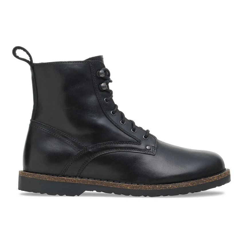 Anfibio stringato Birkenstock modello Bryson in pelle scamosciata nera, caratterizzato da un design essenziale e resistente. Dotato di plantare anatomico estraibile in sughero e lattice Made in Germany, garantisce un comfort superiore per tutta la giornata. Il sottopiede in pelle naturale assicura traspirabilità, mentre la suola leggera in materiali sintetici offre stabilità e durata. Ideale per chi cerca uno stile urbano con il massimo del comfort.