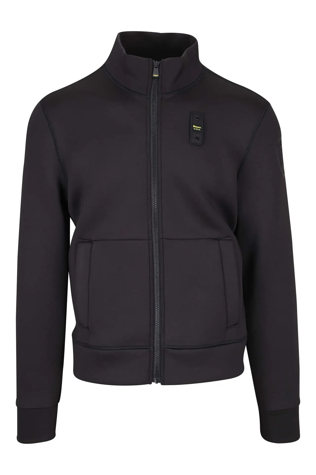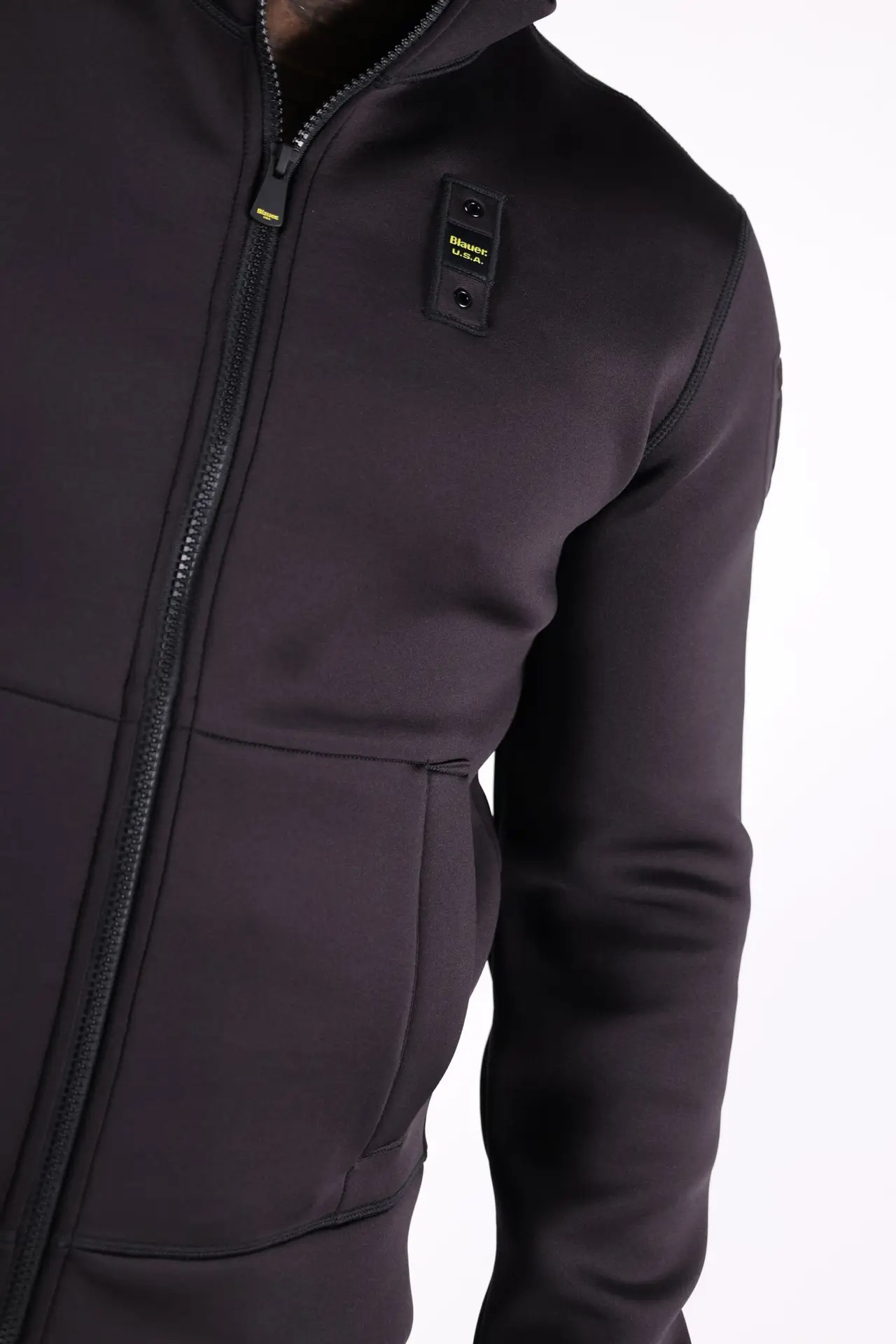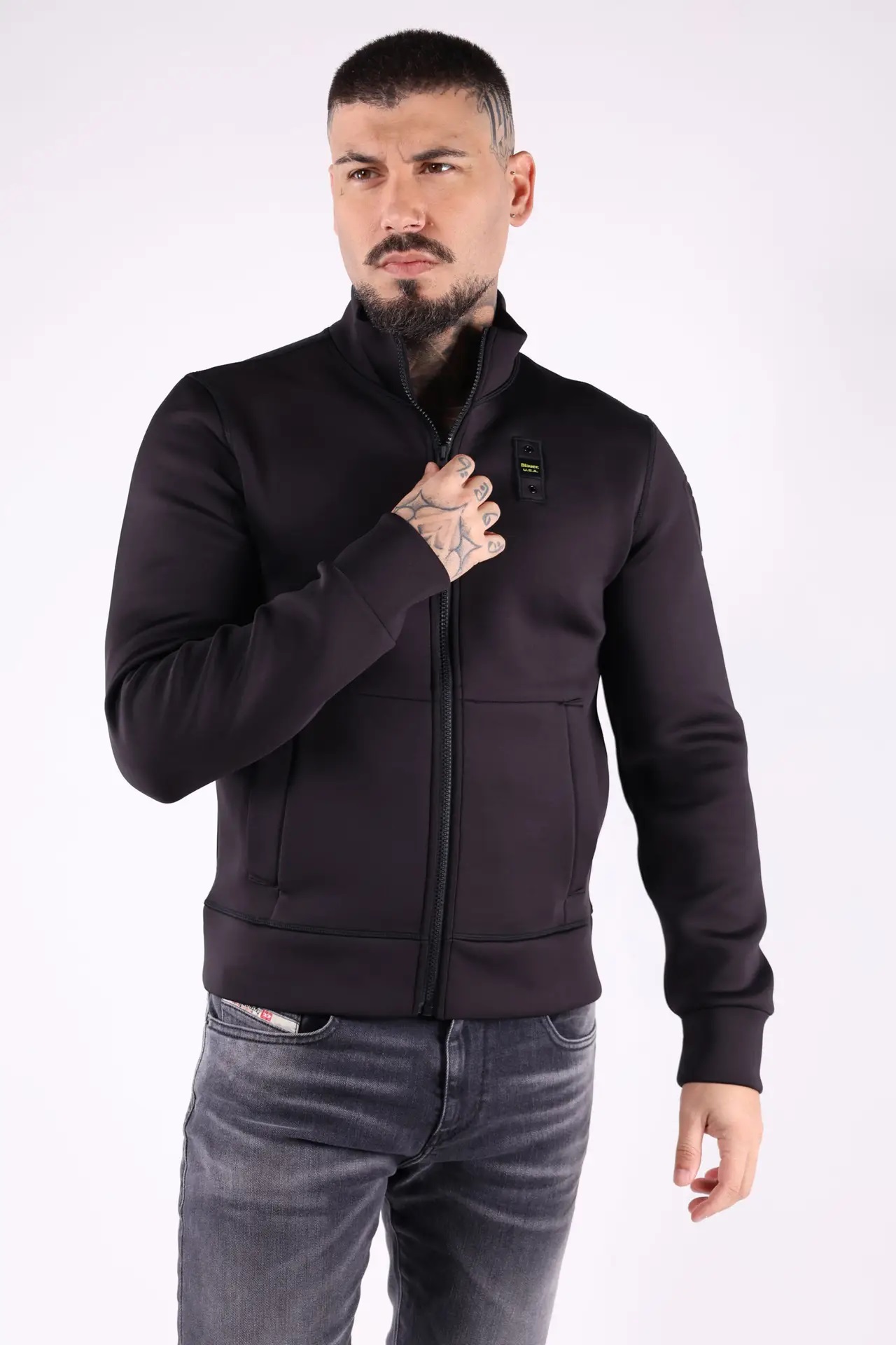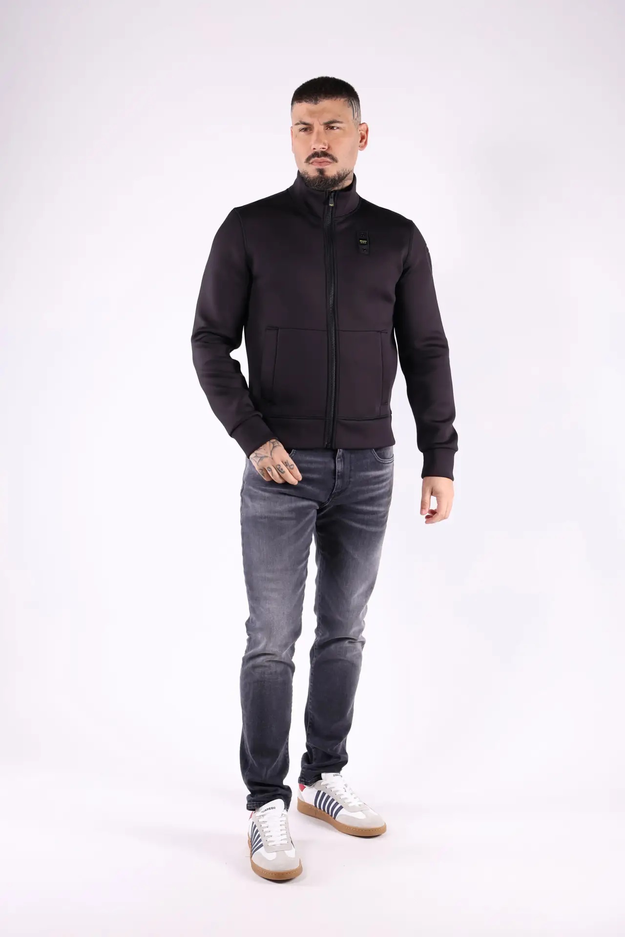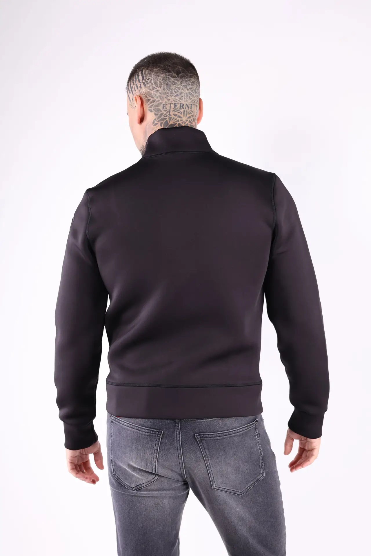 Felpa uomo modello Halborn realizzata in neoprene stretch nero, un tessuto morbido e resistente che non si stropiccia e non si deforma. Dotata di chiusura con zip frontale e tasche a marsupio per la massima praticità, presenta collo rialzato e patch logo applicato sul petto e sulla manica sinistra. Vestibilità regular fit, ideale per un look casual e contemporaneo.