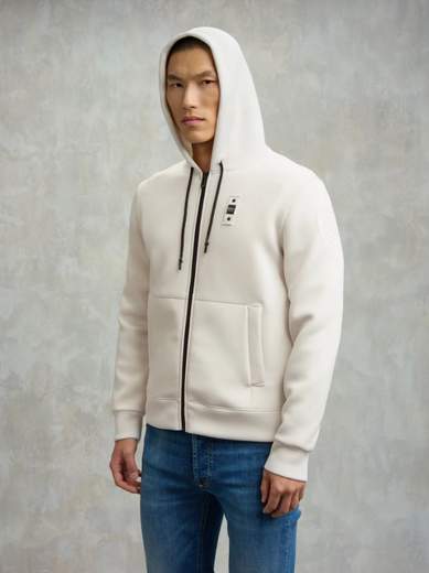 Felpa Uomo in Neoprene "Colby" bianca con Cappuccio e Zip