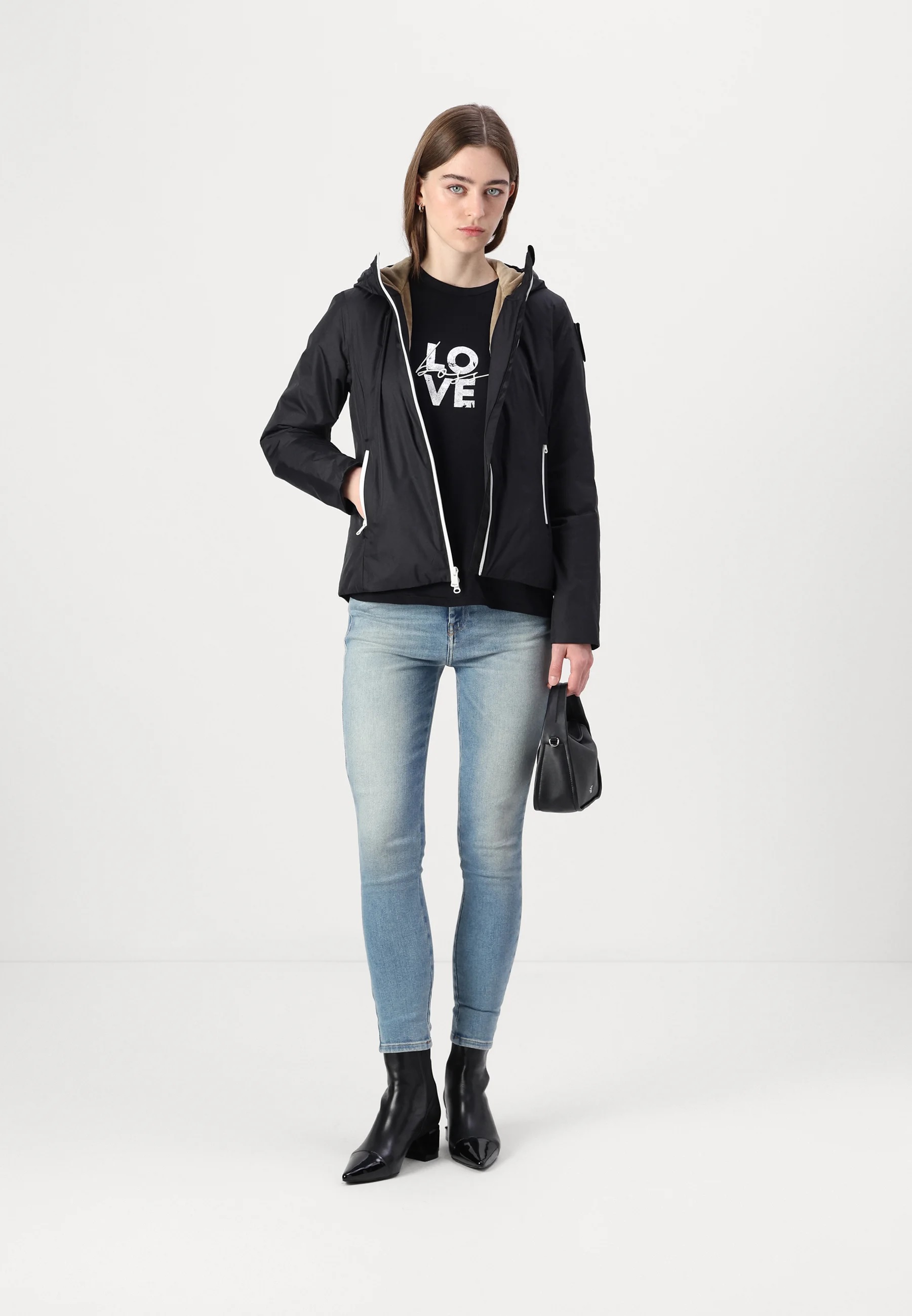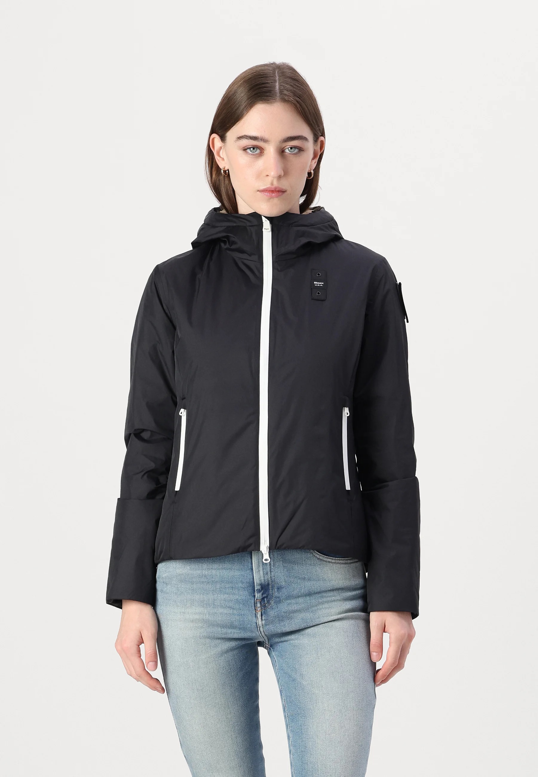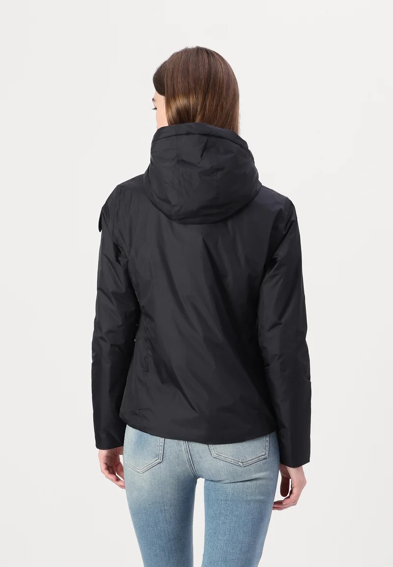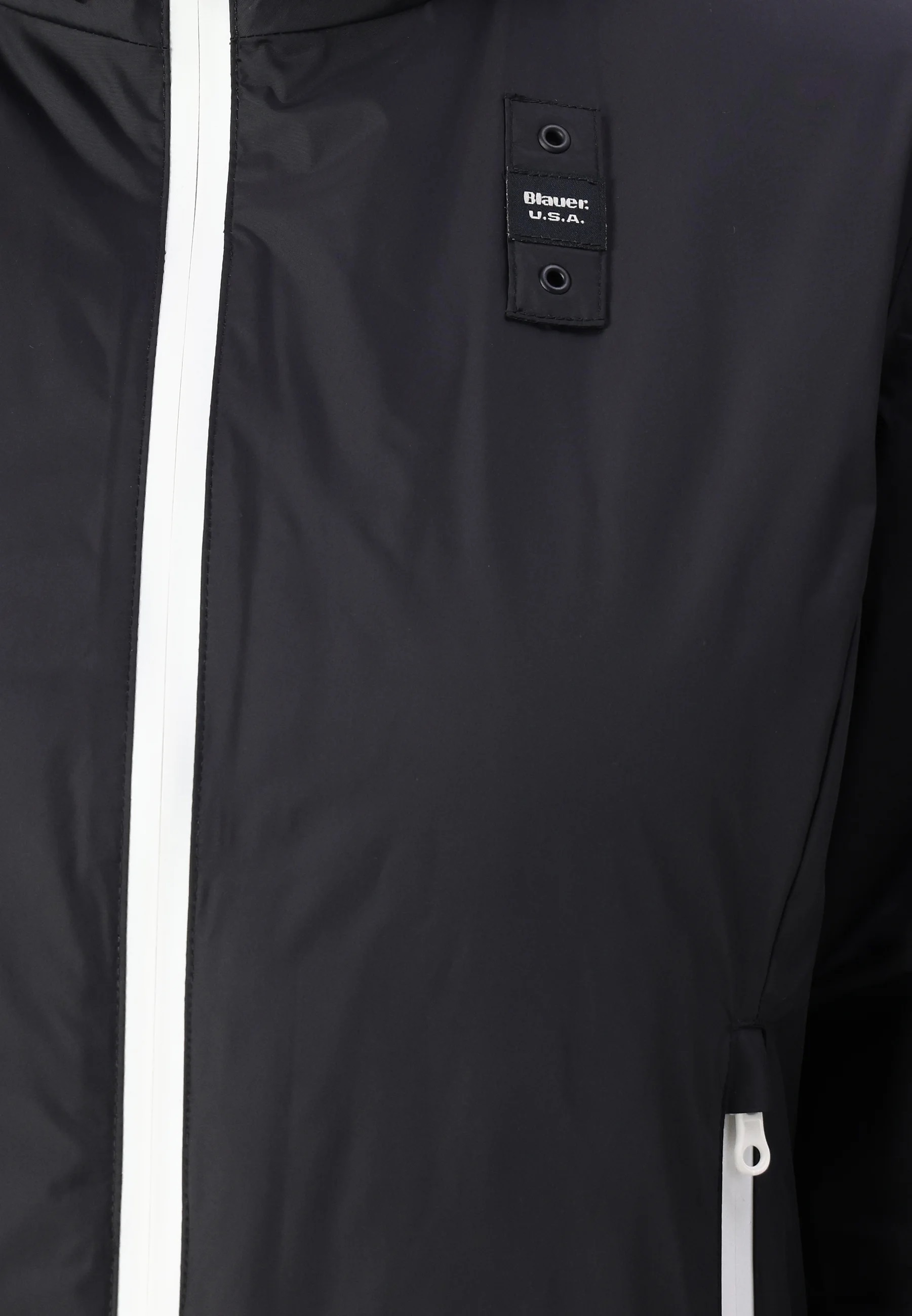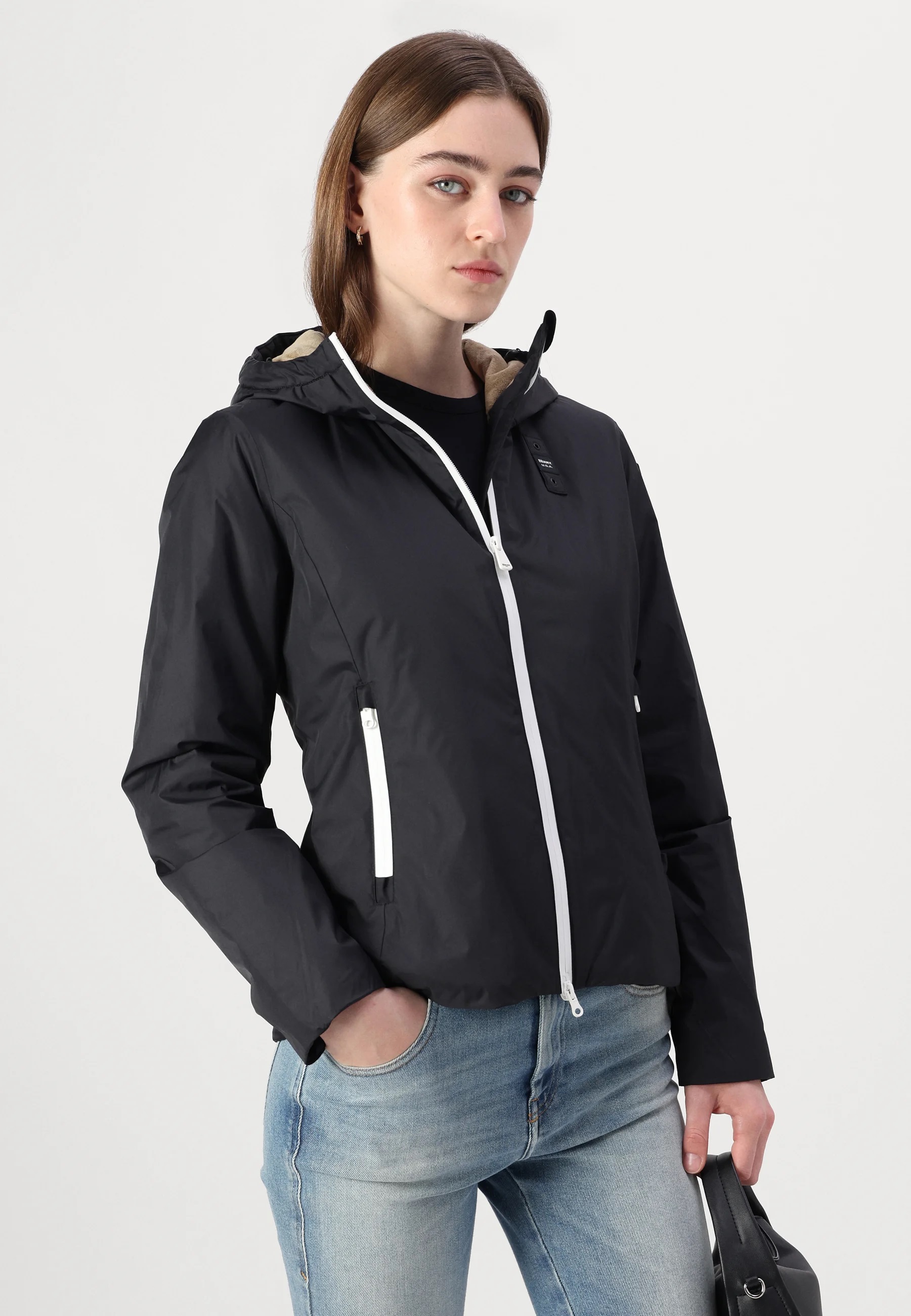 Piumino "Erie" nero realizzato in nylon idrorepellente con cuciture interne nastrate thermofix. Esterno liscio e design moderno, con interno foderato in morbida eco-pelliccia per un comfort caldo e avvolgente anche nelle giornate piovose. Dotato di cappuccio fisso con coulisse, imbottitura leggera in ovatta, chiusura frontale con zip spalmata e tasche laterali coordinate. Tasche interne con velcro per maggiore praticità, fondo regolabile con coulisse e dettagli iconici Blauer con patch glitterato e passante logo. Un capo versatile e confortevole, perfetto per affrontare linverno con stile.