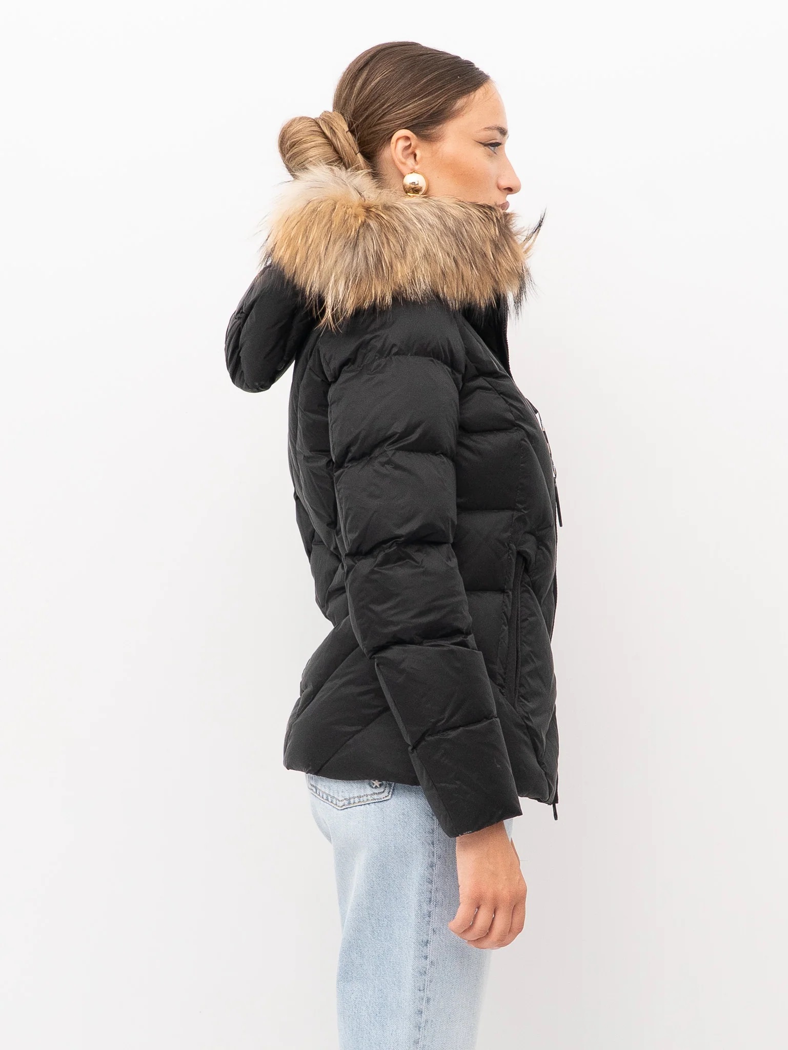 Piumino "Alicia" nero con Trapuntatura e Pelliccia Removibile