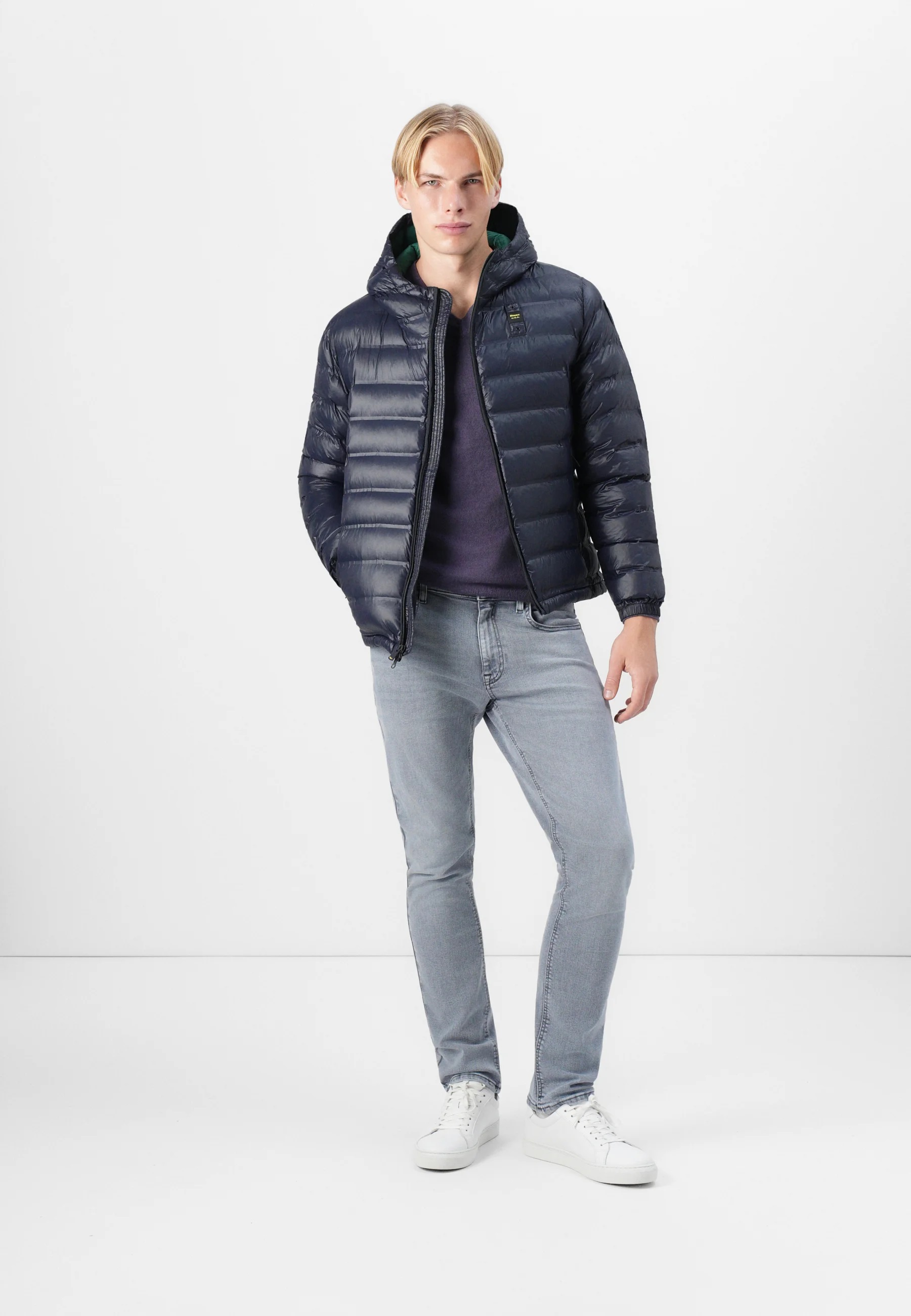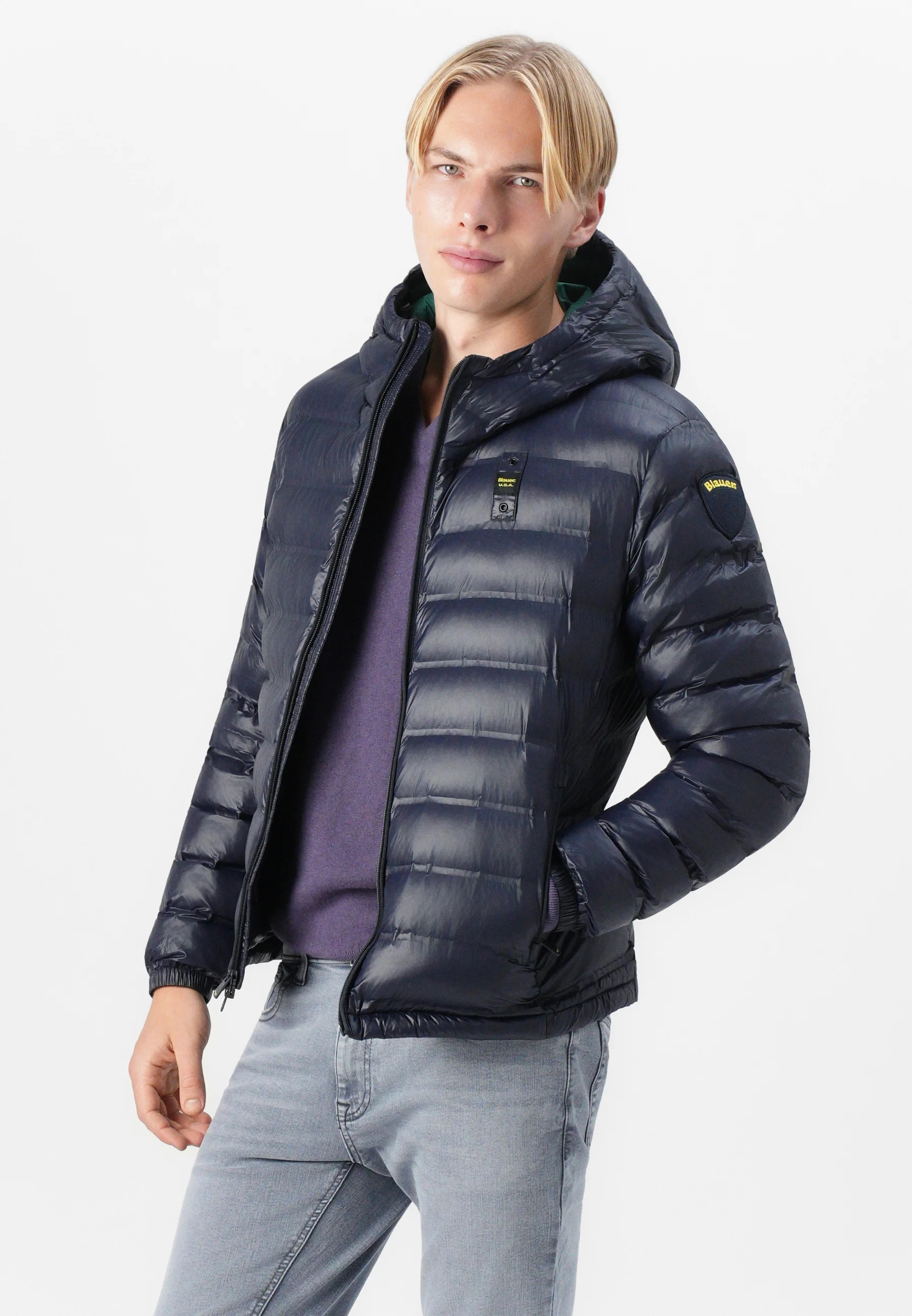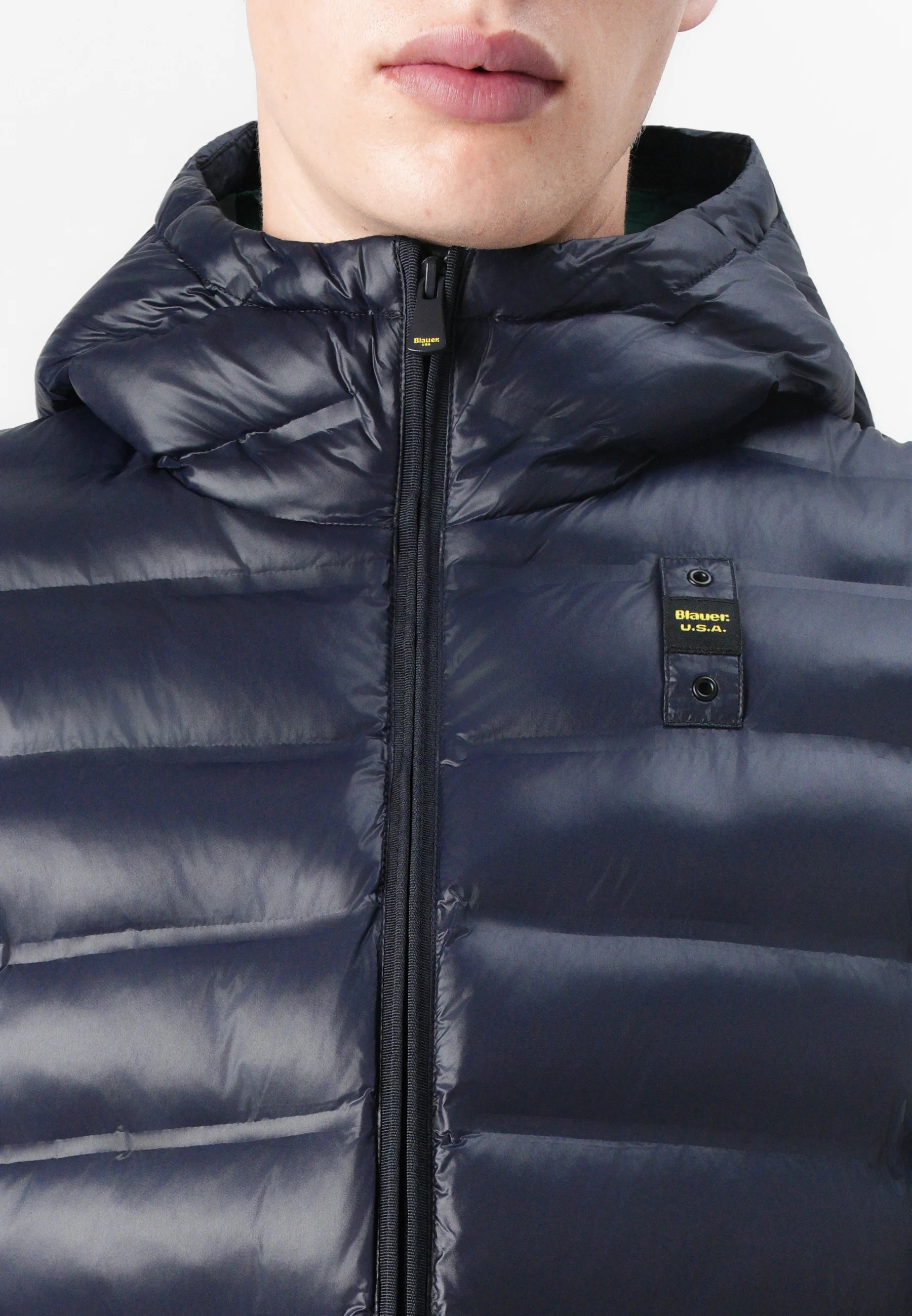 uomo 〉 Abbigliamento 〉 Piumino 〉 Piumino "Charles" blu con Interno Verde Termosaldato e Cappuccio