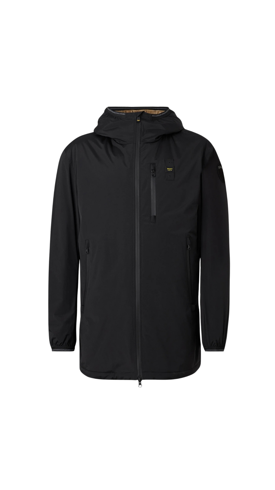 Piumino lungo da uomo "Jarvis" firmato Blauer, realizzato in nylon a doppio strato liscio, leggero e idrorepellente. Il modello, dal taglio moderno e funzionale, è dotato di cappuccio fisso con elastico rigato e interno in morbida pelliccia ecologica a contrasto colore che assicura calore e comfort. Presenta chiusura frontale con zip spalmata, tasche laterali e taschino sul petto con zip termosaldata. Completano il design i polsini con elastico rigato, tasche interne con chiusura in velcro e patch logato Blauer con passante iconico. Perfetto per affrontare linverno con stile e praticità.