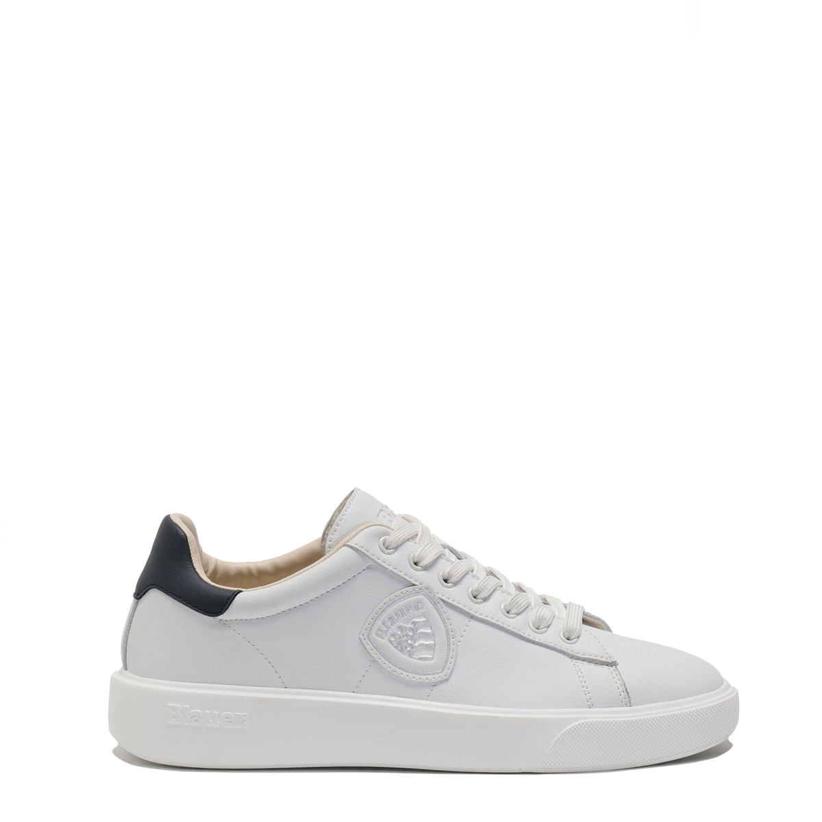 uomo 〉 Calzature 〉 Scarpa 〉 Sneakers "Buck" Bianche con Dettagli Blu Navy in Pelle Granata