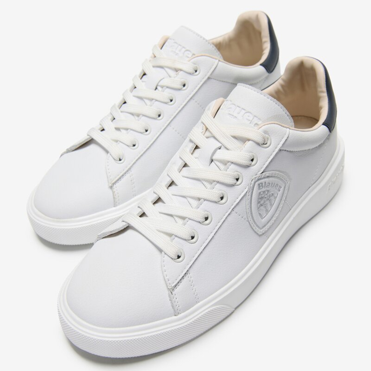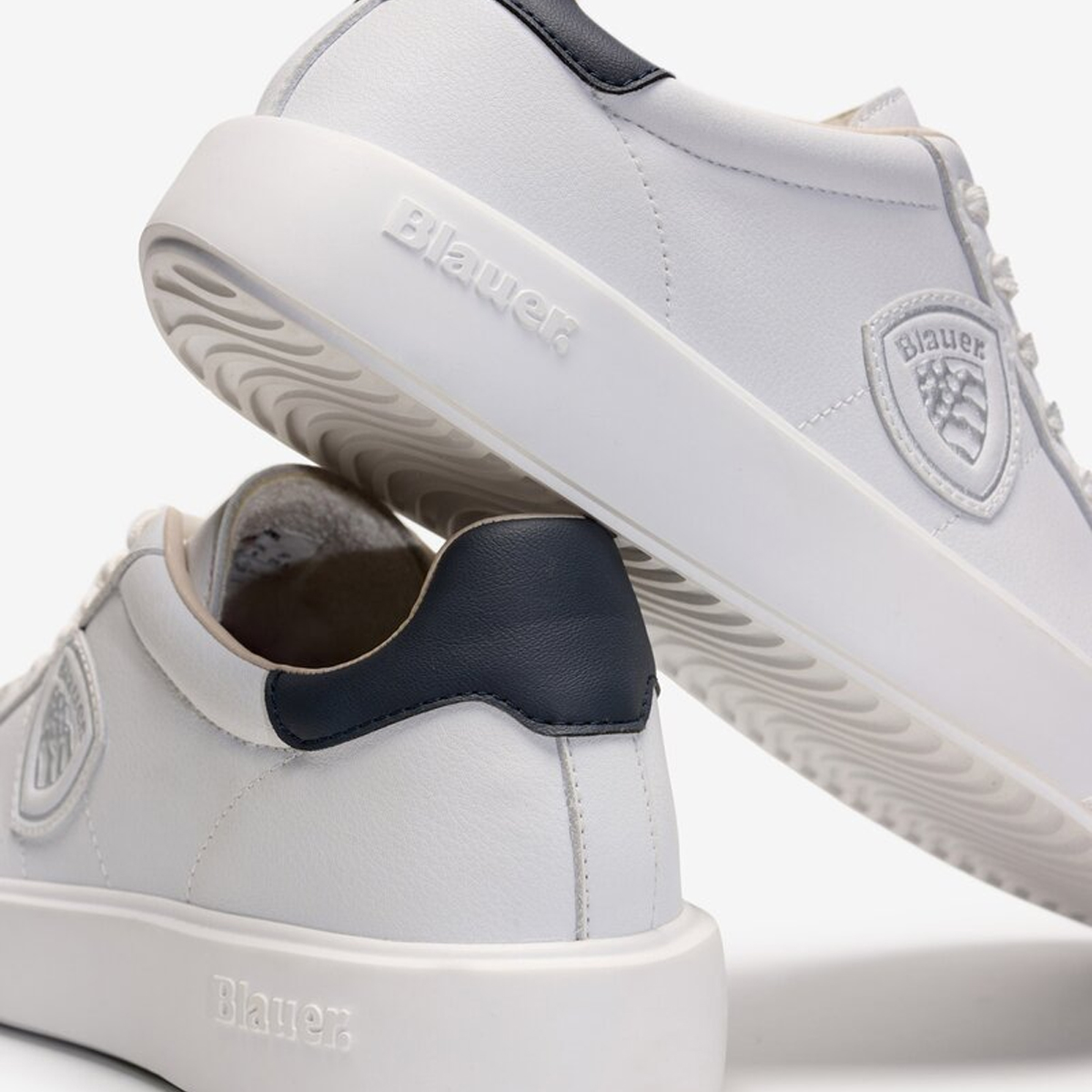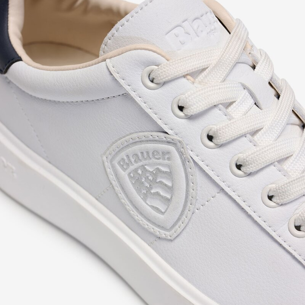 Sneakers "Buck" Bianche con Dettagli Blu Navy in Pelle Granata