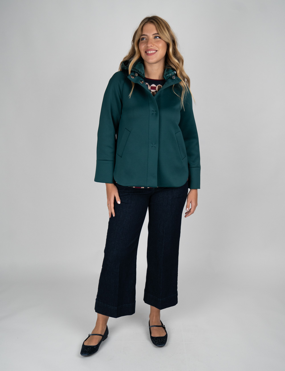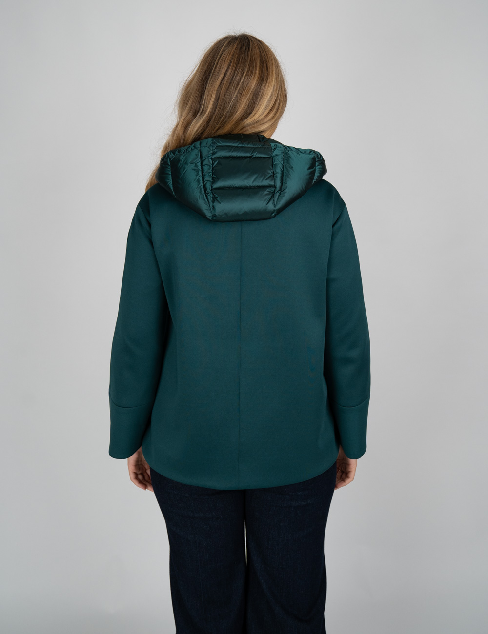 Caban verde in Scuba Ultrastretch con Cappuccio in Nylon Trapuntato