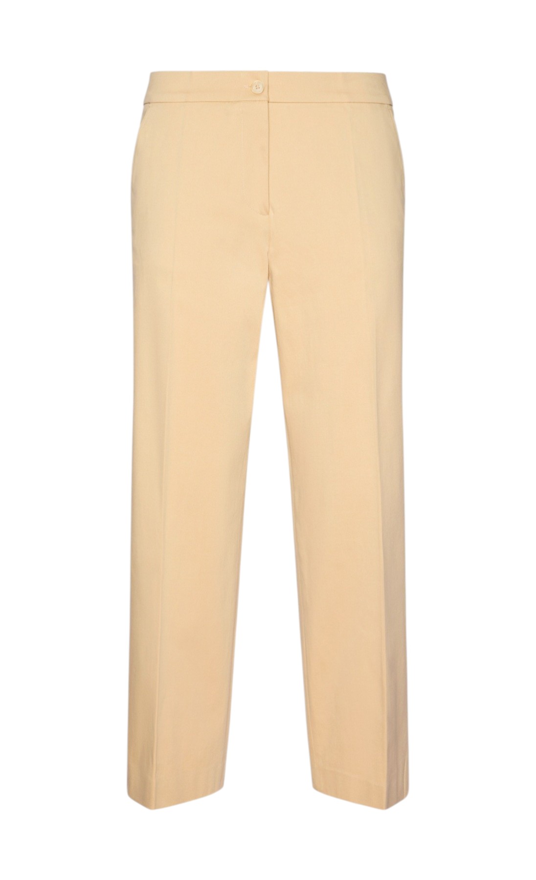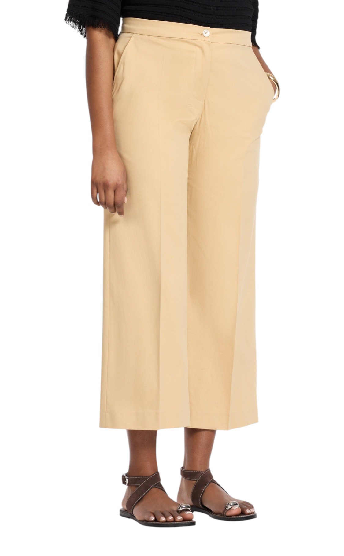 Pantalone cropped in tricotina strech misto cotone con gamba dritta, chiusura a bottone e zip, tasche americane. Vestibilità regolare.