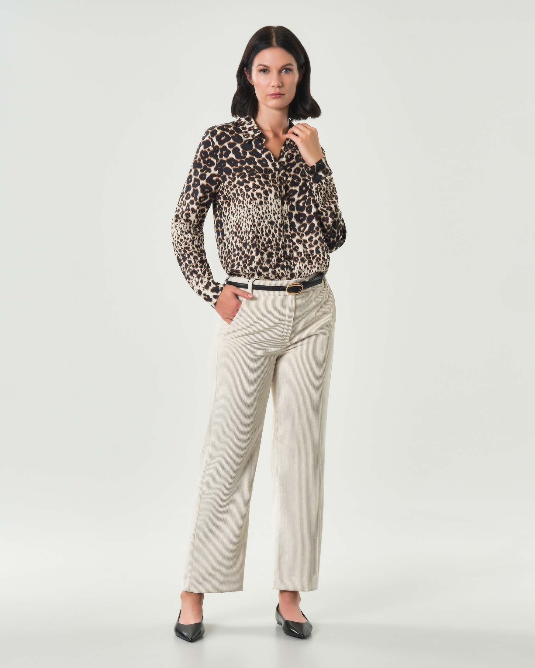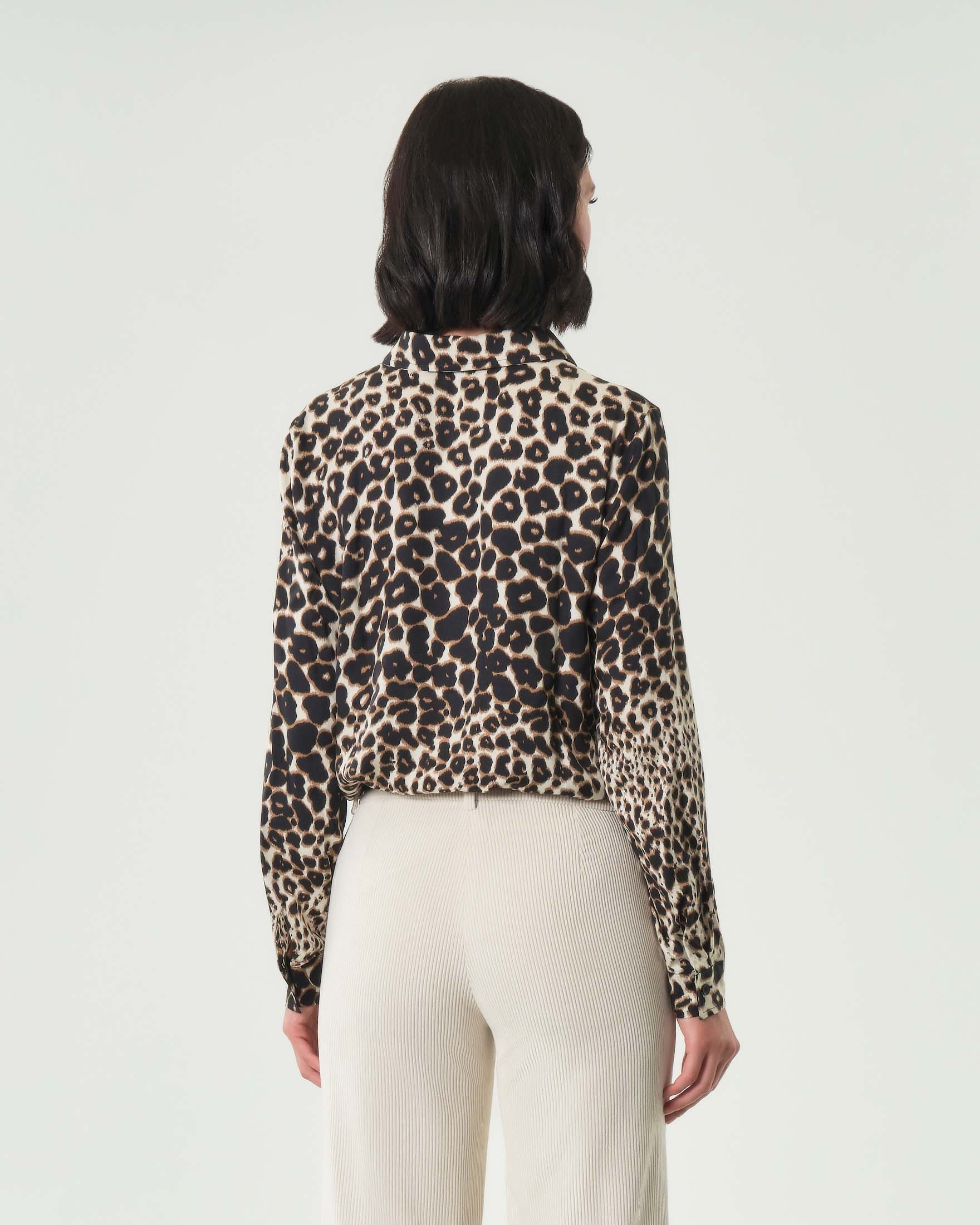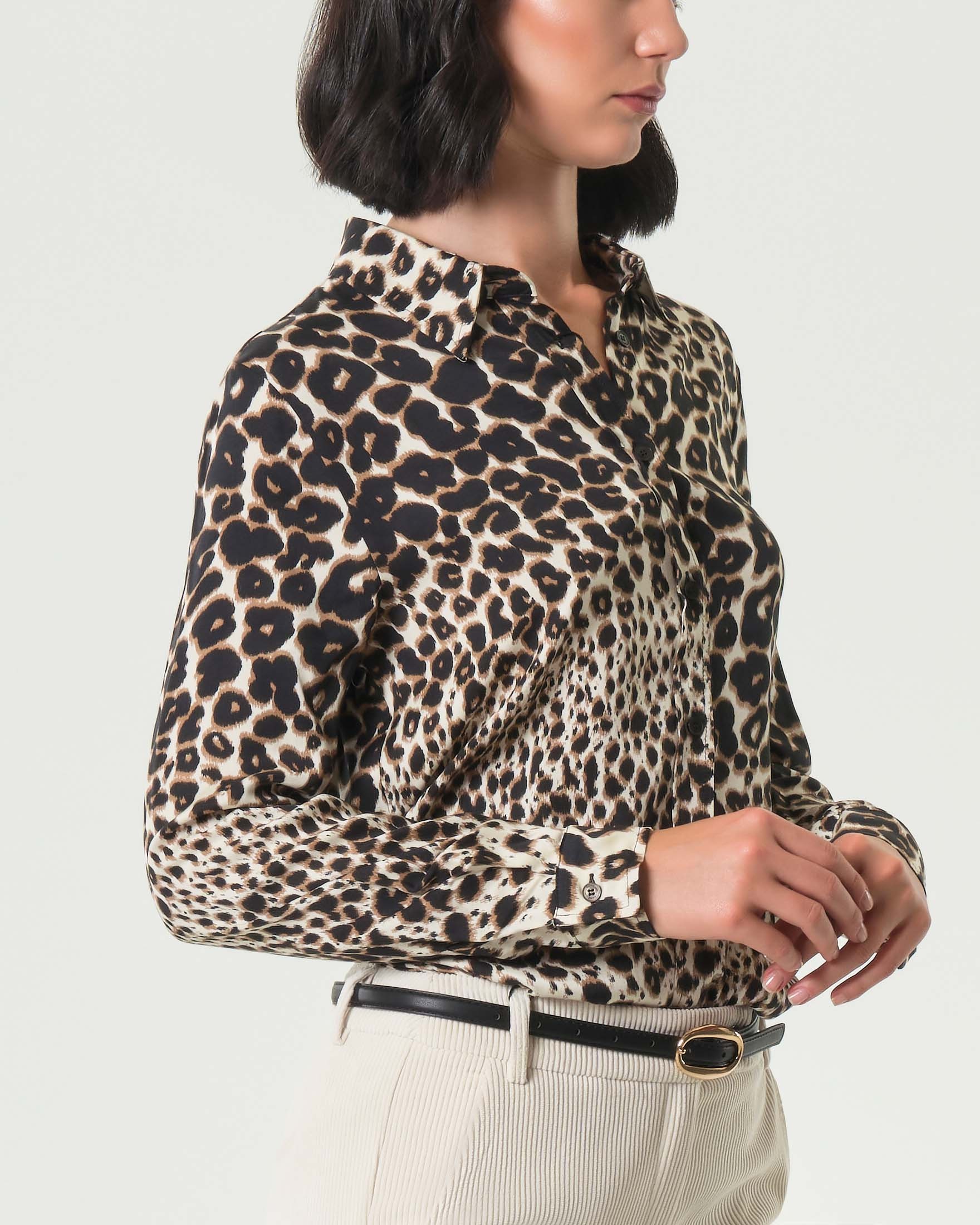 Camicia "Olivia" in twill di viscosa stampata animalier cammello