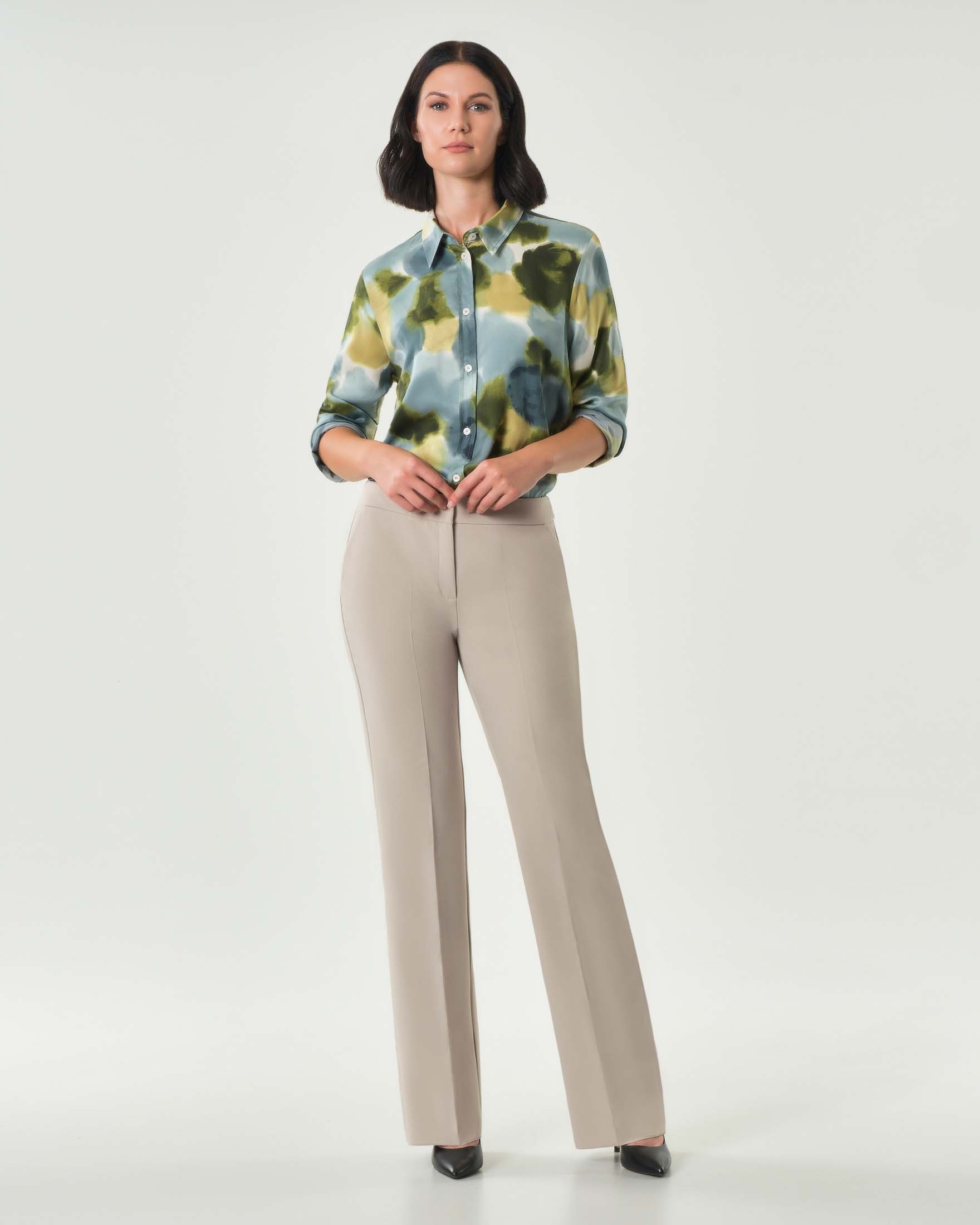 Camicia "Olivia" in twill di viscosa stampata con motivo astratto carta da zucchero. Modello dal fit dritto con collo classico, abbottonatura frontale a vista con bottoni personalizzati e maniche lunghe rifinite con polso e bottone. Essenziale e versatile, perfetta per look sofisticati dal giorno alla sera.