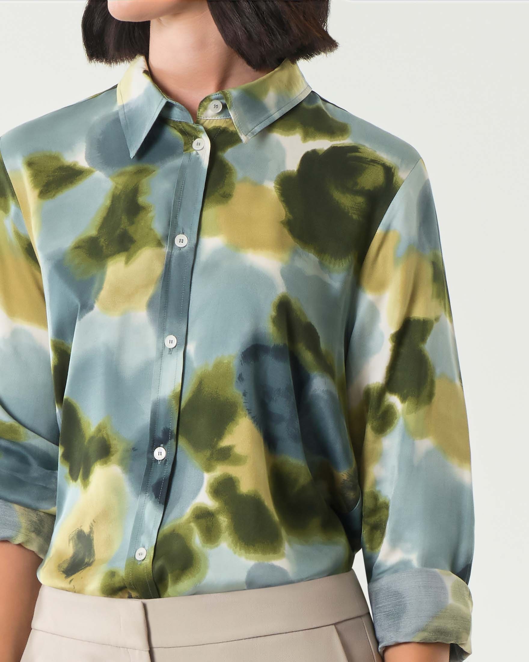 Camicia "Olivia" in twill di viscosa stampata carta da zucchero