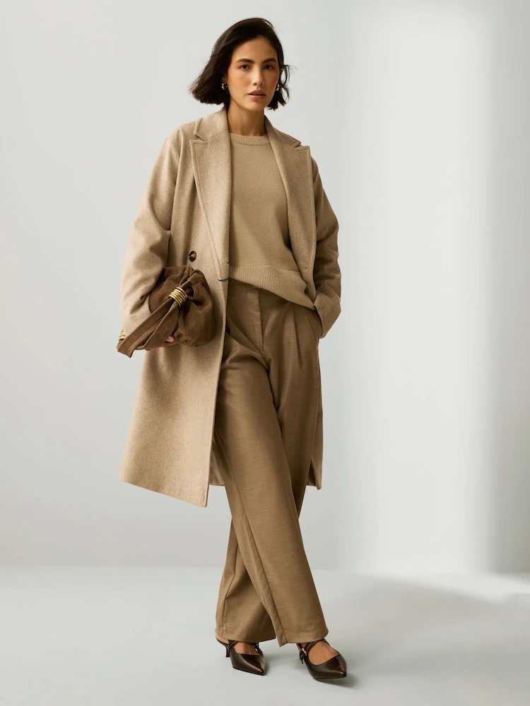 Cappotto Doppiopetto "Roll" color Cachà in Drap di Lana e Nylon