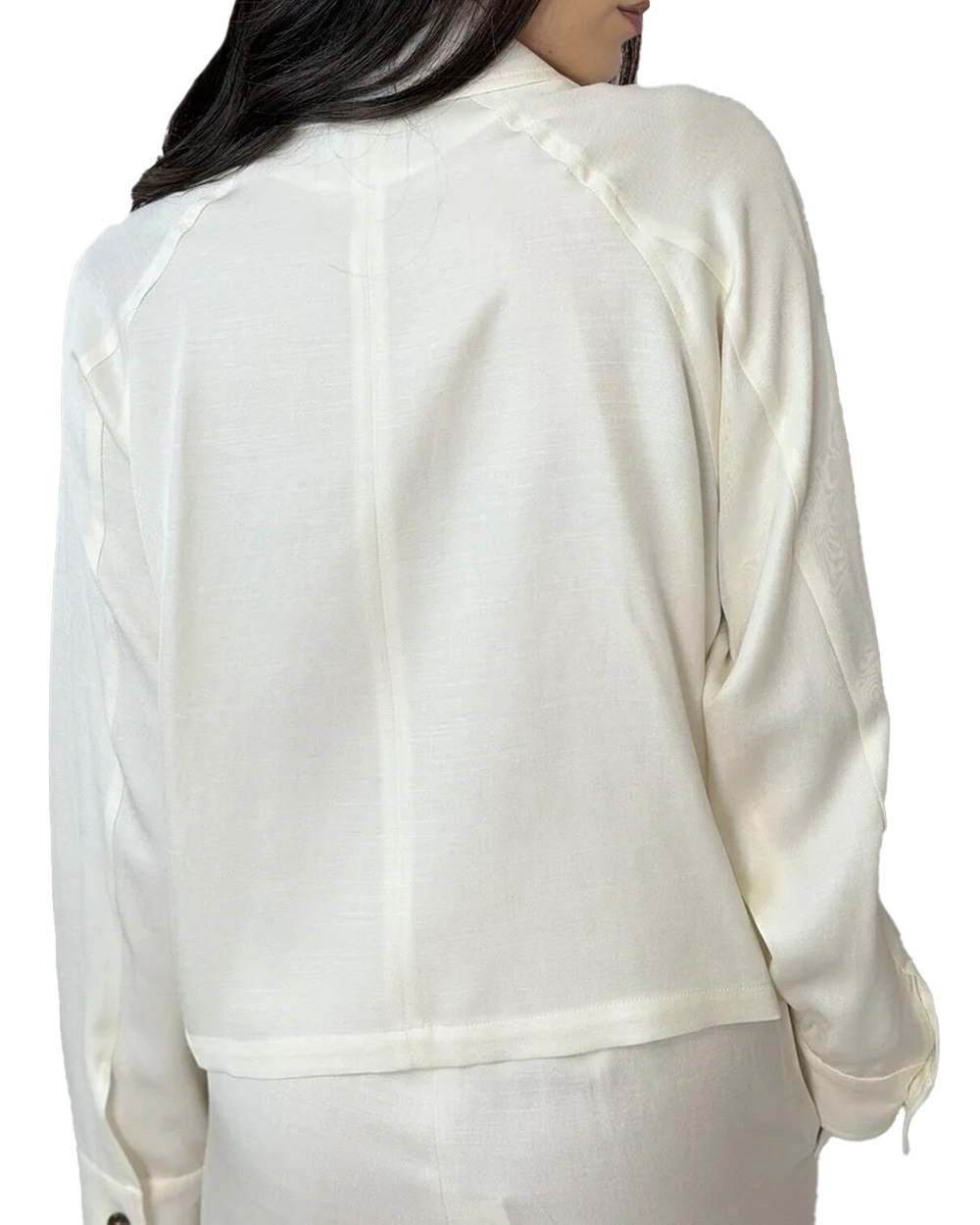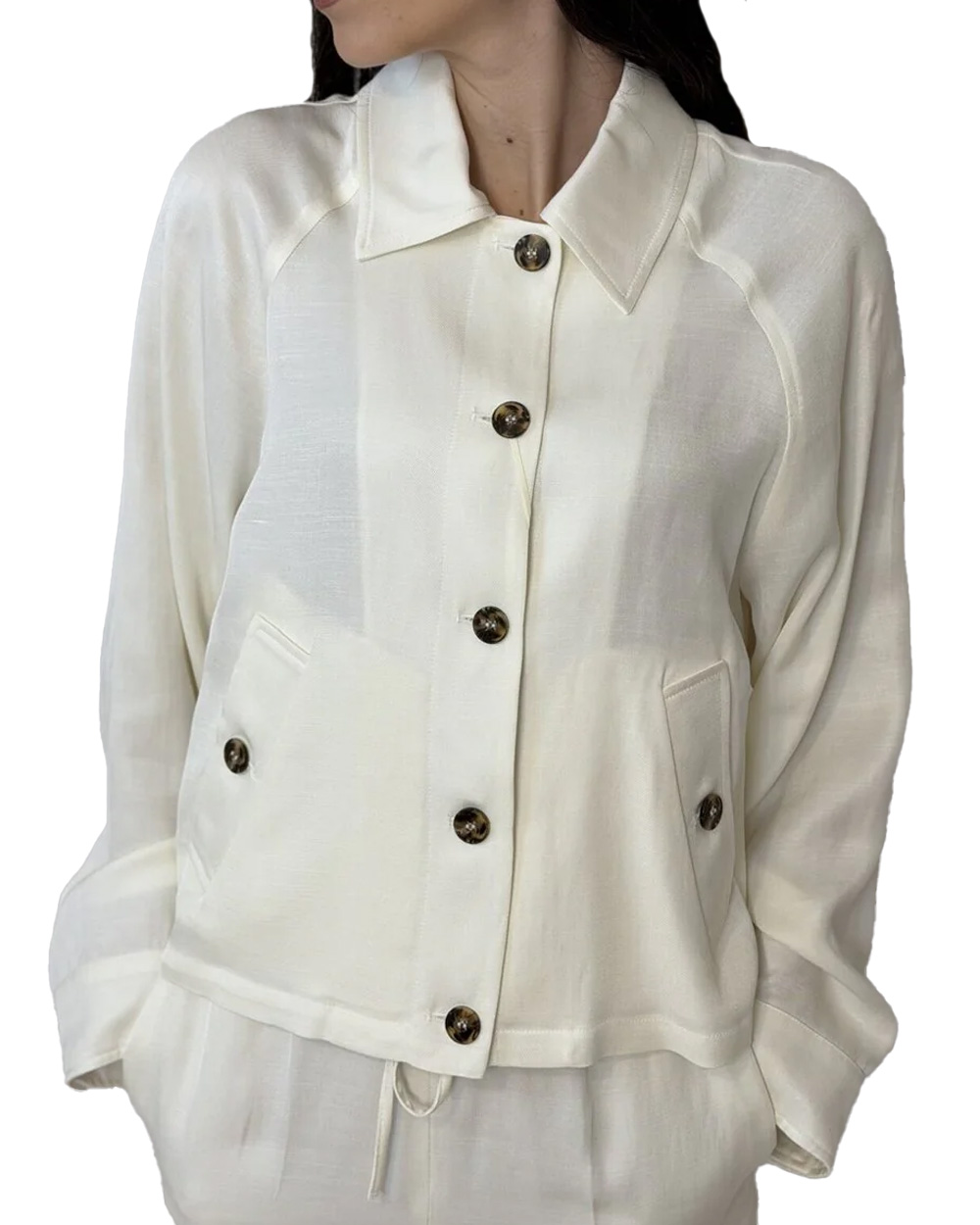 Collo a camicia con maniche raglan.