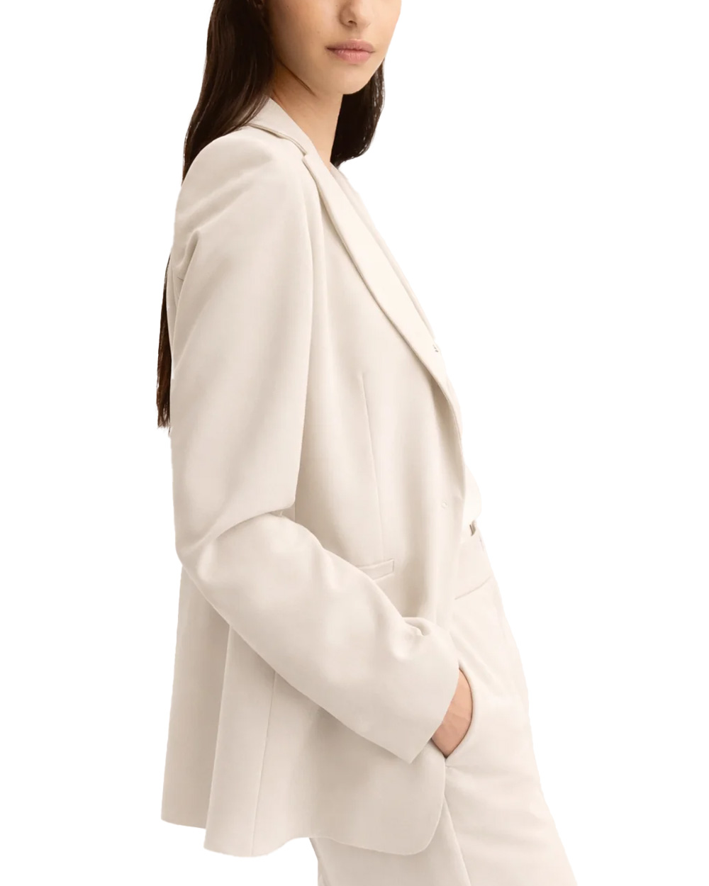 Giacca in tessuto fluido stretch con fodera interna.
