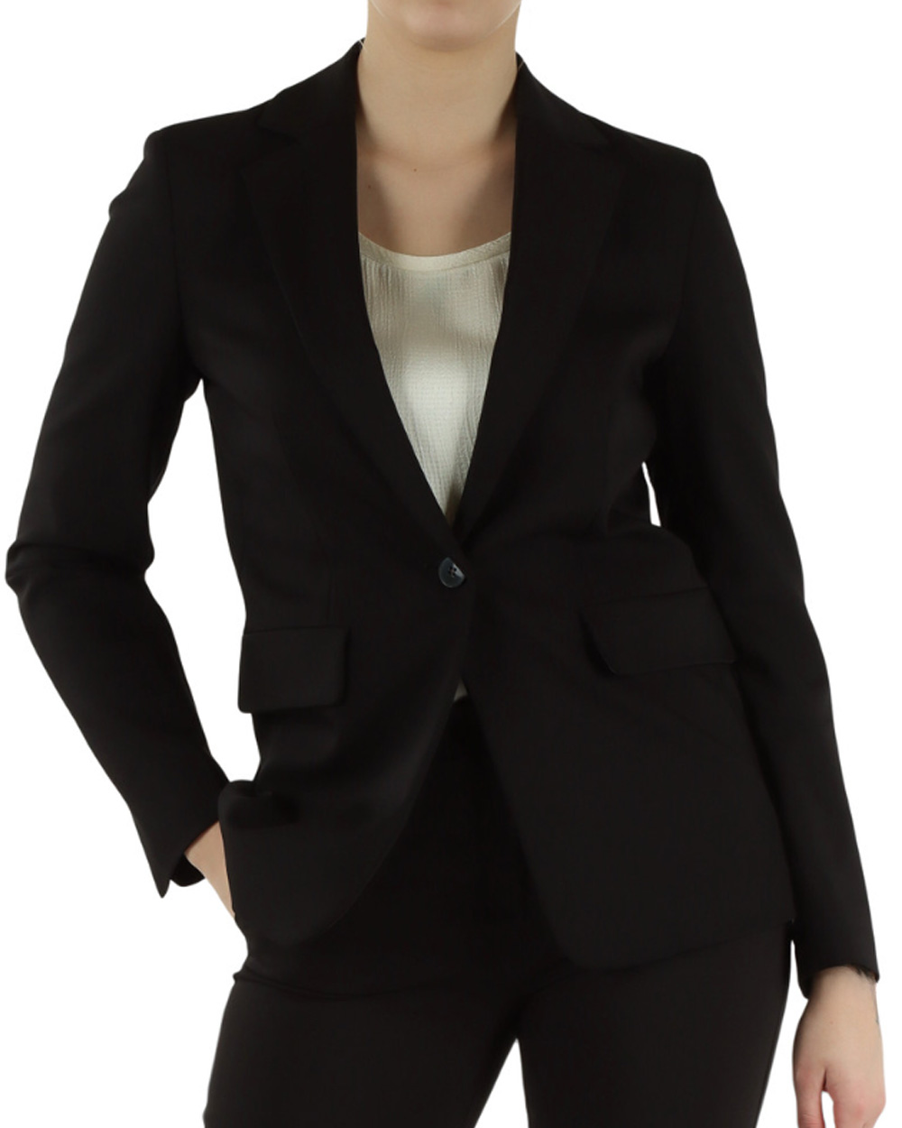 Chiusura monopetto con bottone a vista.