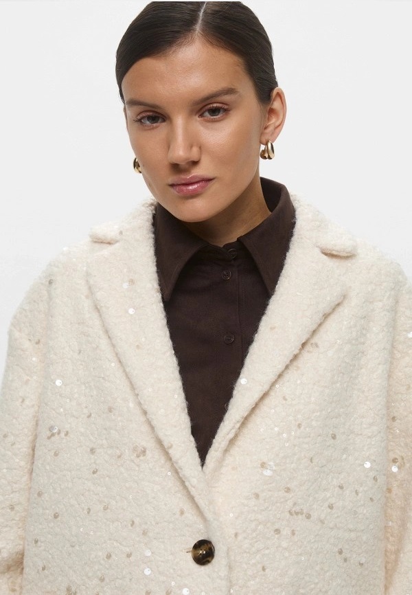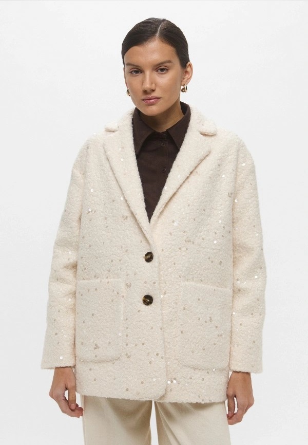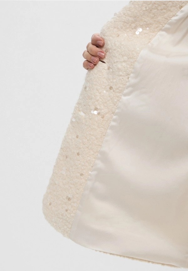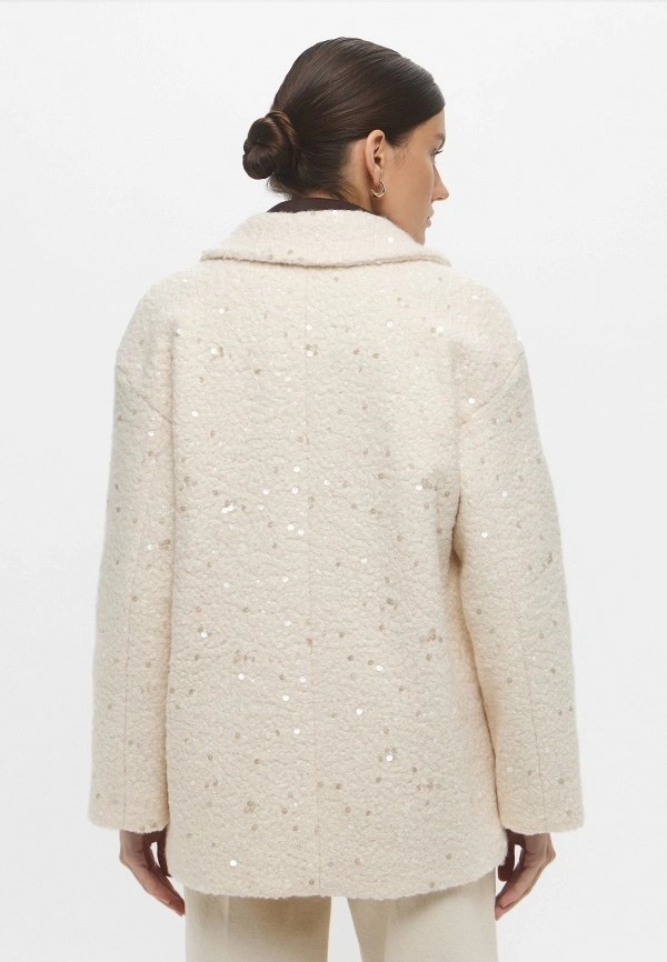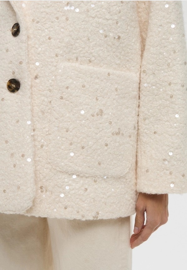 Giaccone "Ranch" Color Burro in Jersey Bouclé con Paillettes