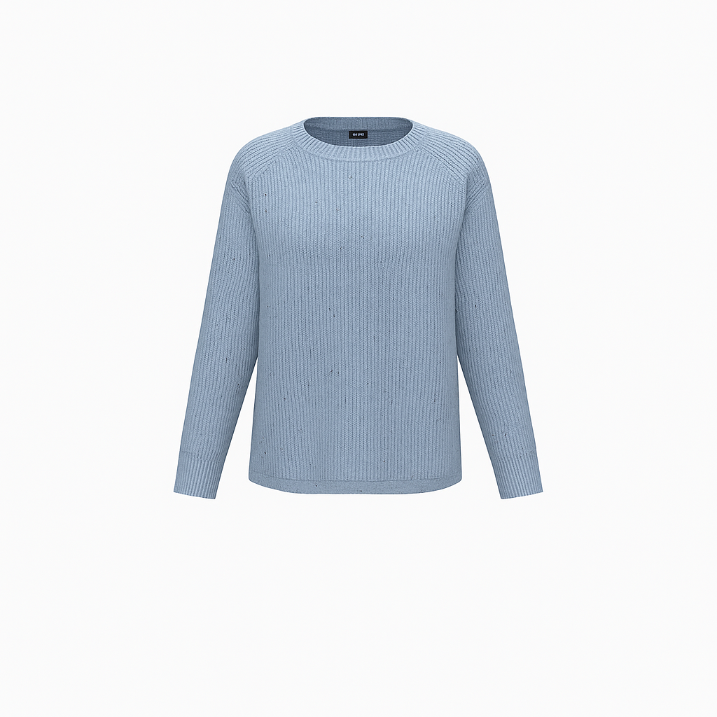 Maglia "Parole" azzurro realizzata in filato comfy wool, impreziosita da luminose paillettes. Modello dal fit dritto con scollo a barchetta rifinito da bordo rollé e lavorazione a punto pannocchia. Il fondo stondato aggiunge un tocco morbido e femminile. Un capo versatile e raffinato, perfetto per illuminare i tuoi outfit quotidiani e serali.