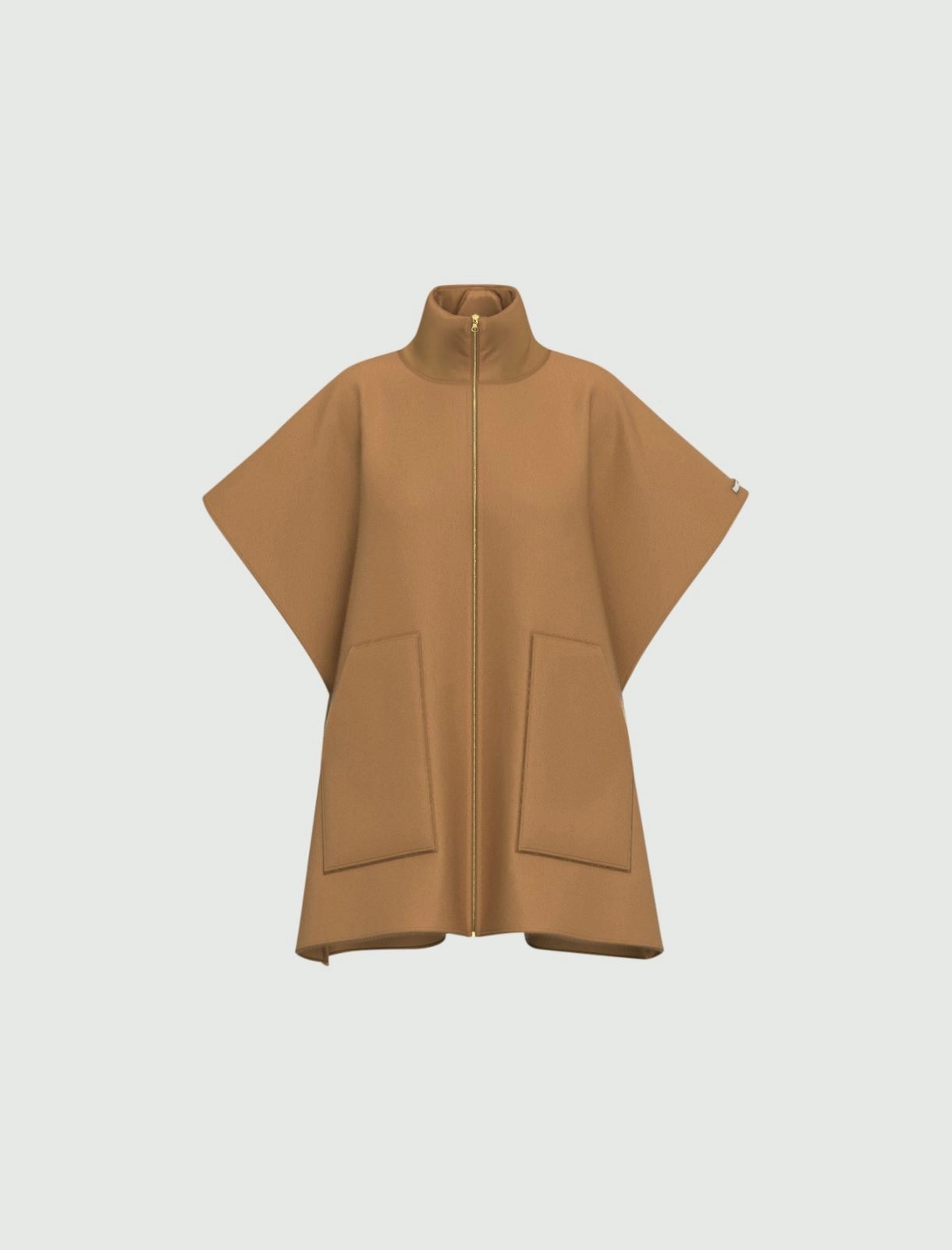 Elegante mantella cammello realizzata in tessuto tecnico double con carré imbottito, perfetta per la stagione di transizione. Il modello presenta fit dritto, collo rialzato e chiusura frontale con zip. Le maniche ad aletta e gli spacchi laterali donano libertà di movimento, mentre le macro tasche applicate aggiungono un tocco funzionale e contemporaneo. Un capo sofisticato e versatile, ideale per completare look raffinati e quotidiani.