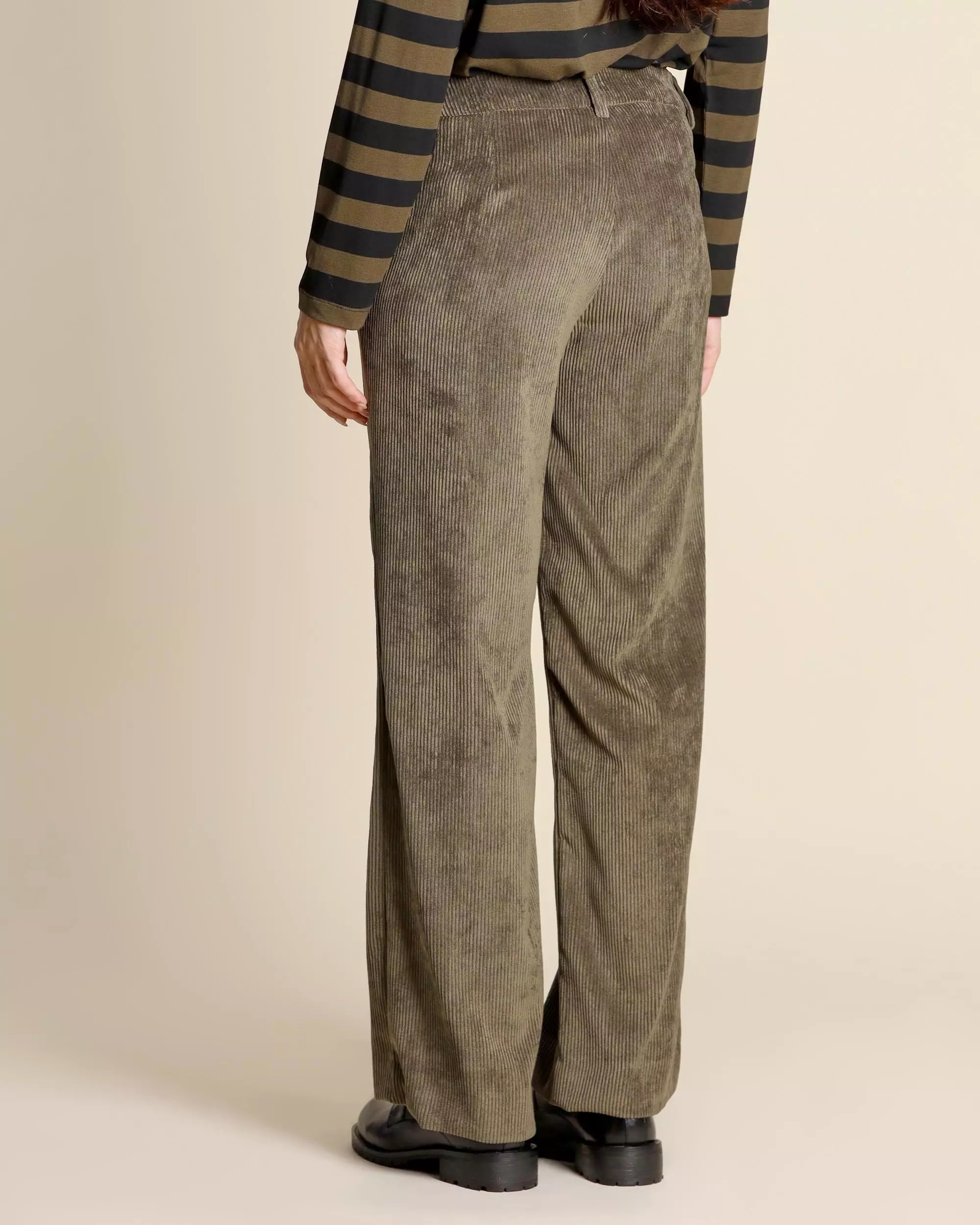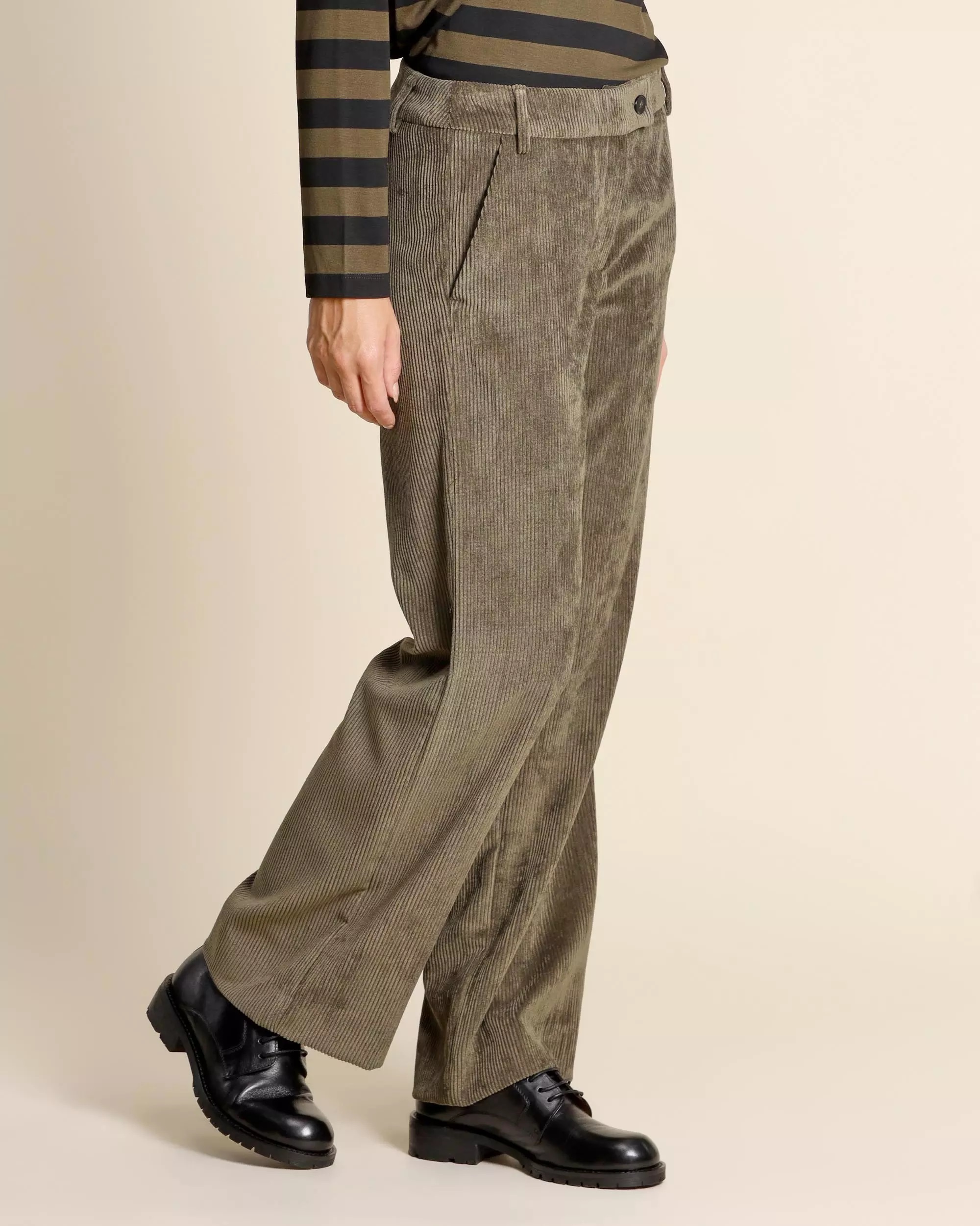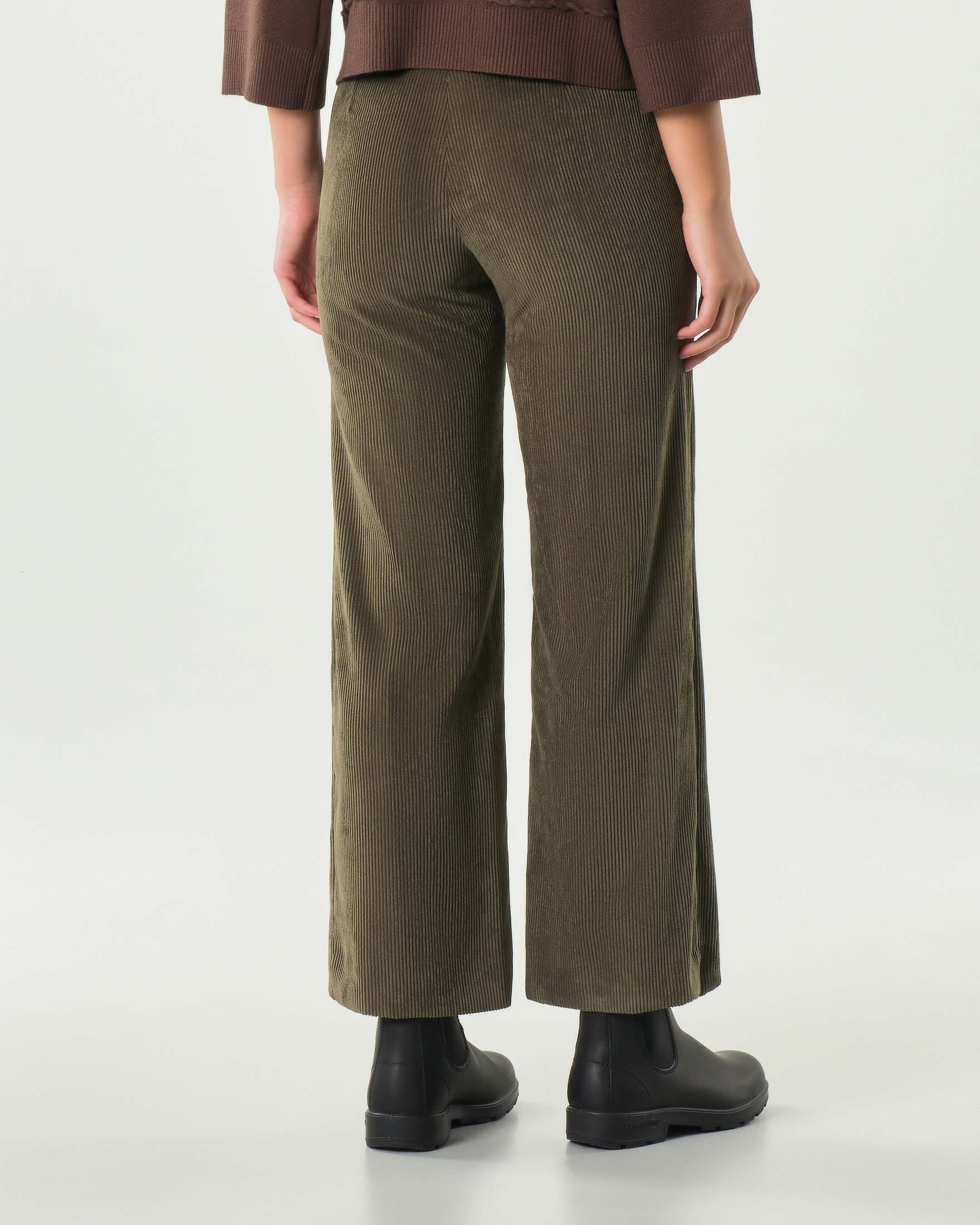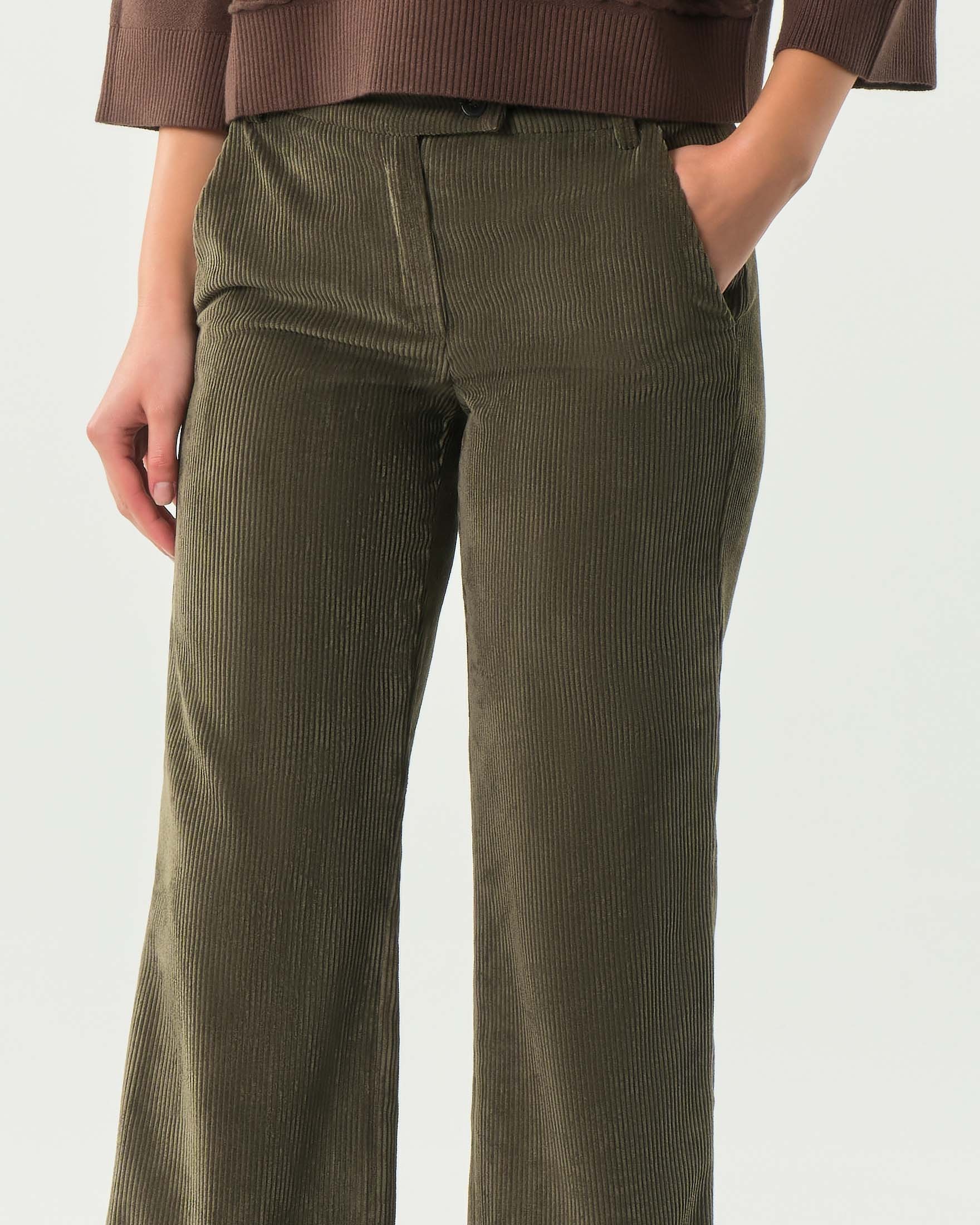 Pantalone Dritto in Velluto a Coste "Destino" verde khaki