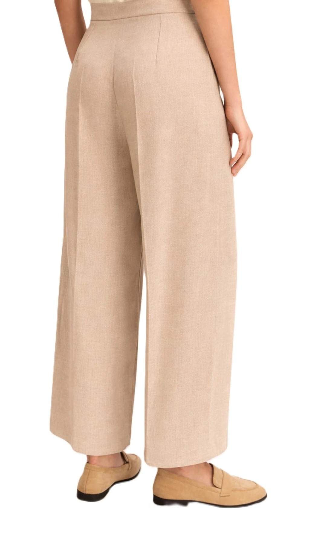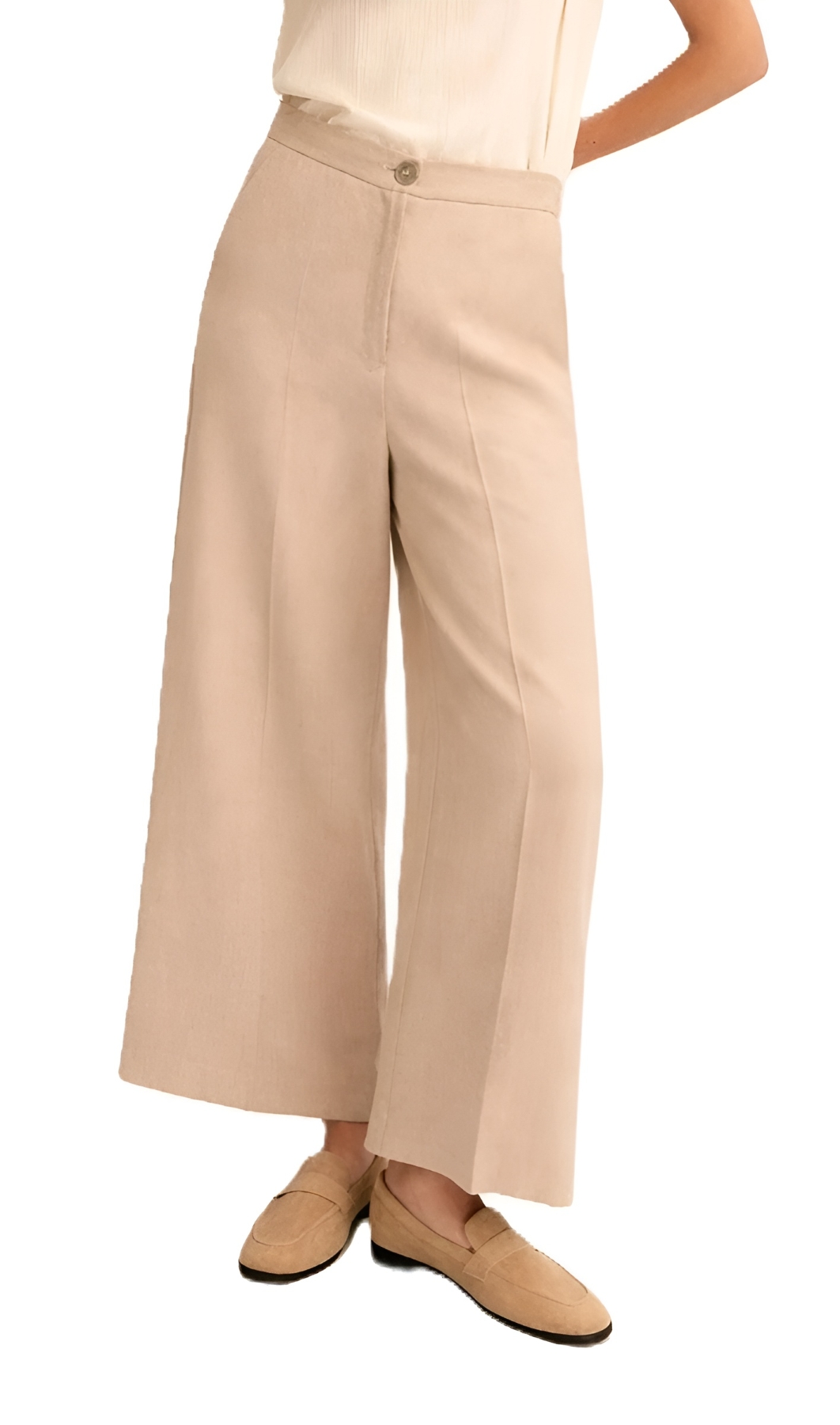 Pantaloni in twill di lino e viscosa, chiusura con bottone a vista e zip nascosta. Tasche laterali alla francese e pince posteriori. Piega stirata fronte e retro. Fit regolare.