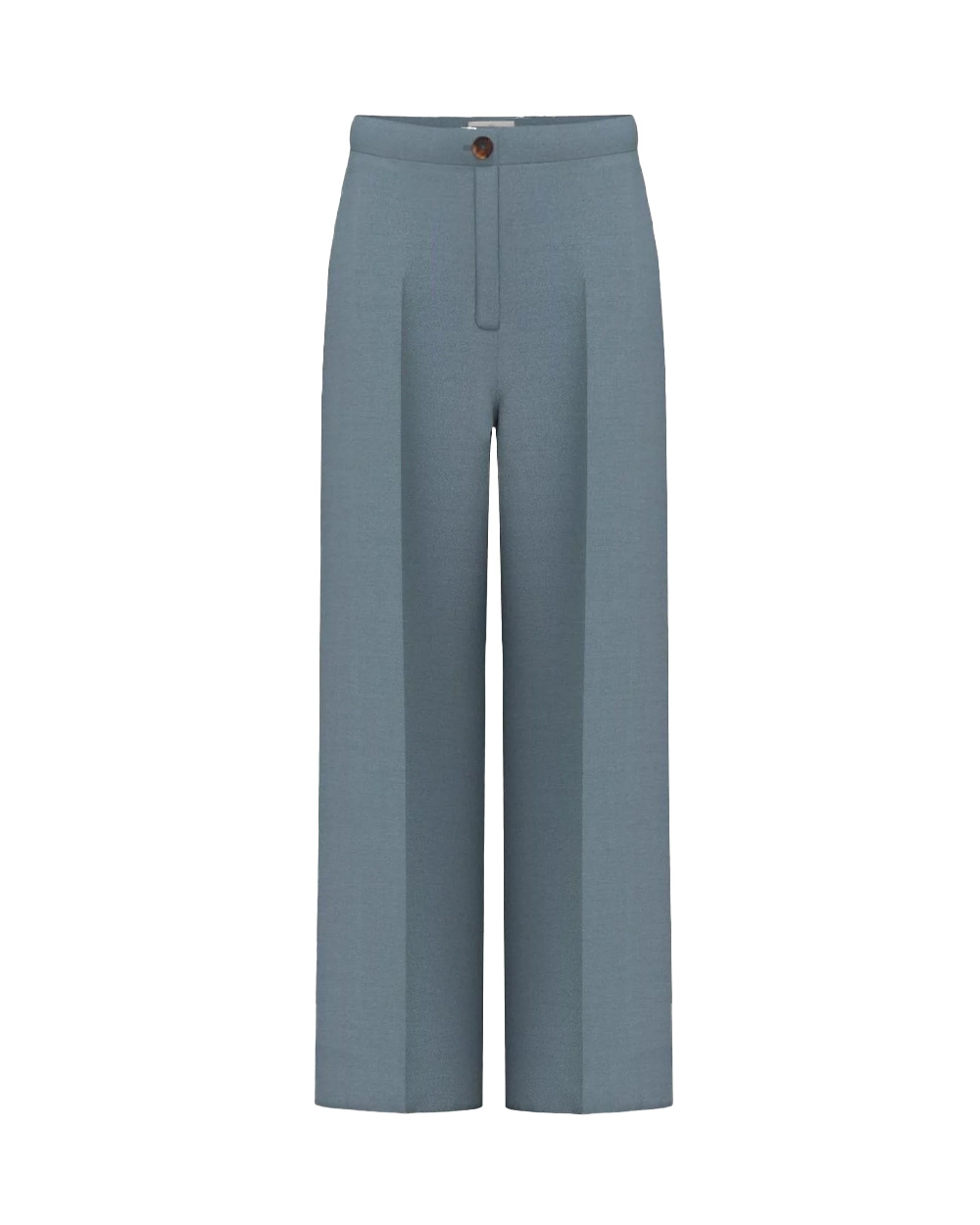 Pantalone in twill di lino e viscosa. Fit regolare. Chiusura con bottone a vista e zip nascosta.