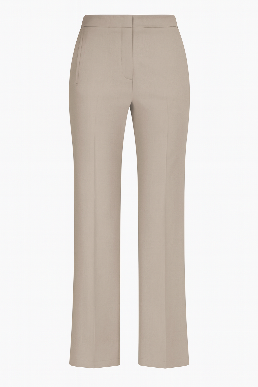 Pantalone "Sarago" realizzato in flanella di misto viscosa stretch, caratterizzato da fit dritto e piega stirata fronte e retro. Vita con inserto elastico posteriore per maggiore comfort e tasche laterali a filetto. Linee essenziali perfette per look metropolitani ed eleganti.