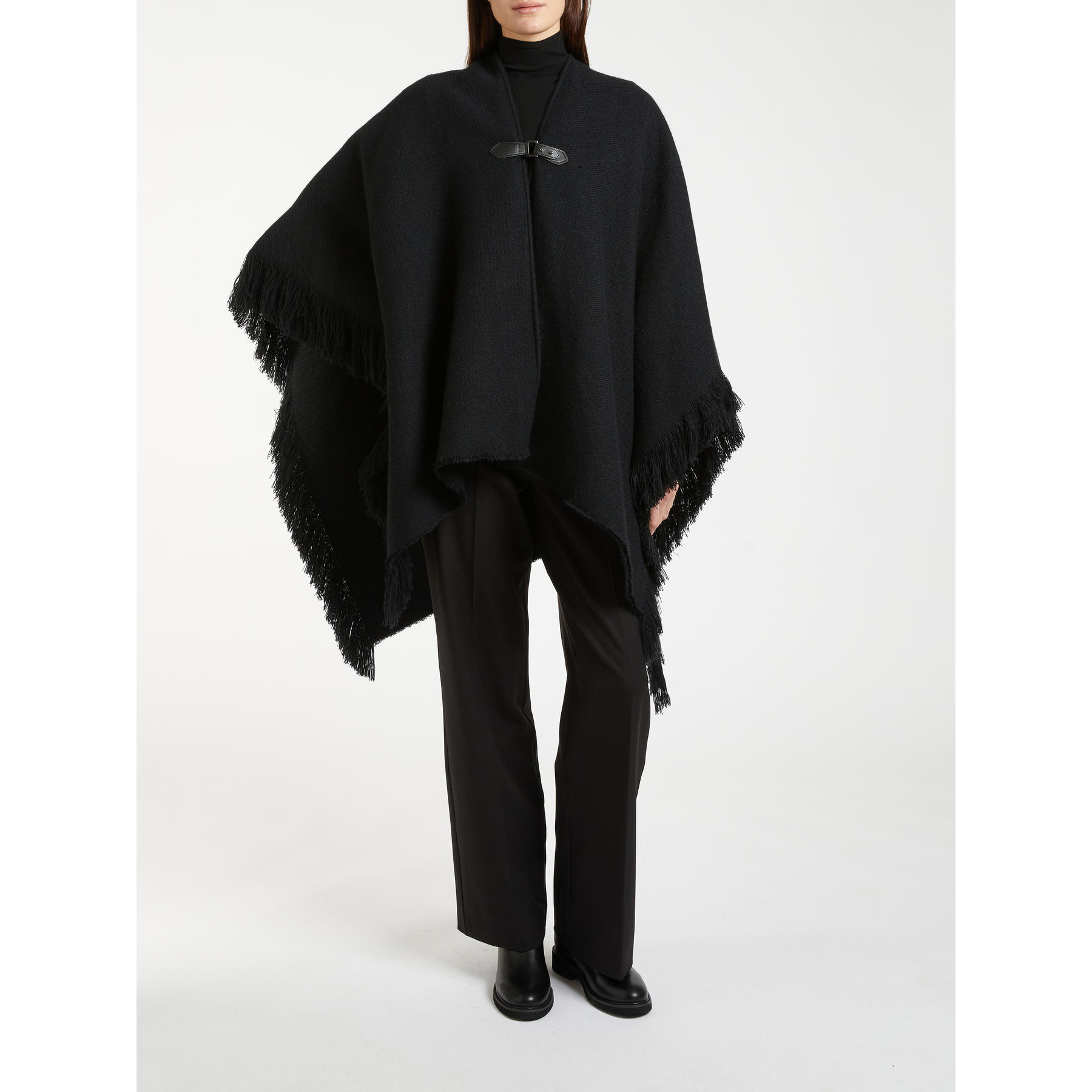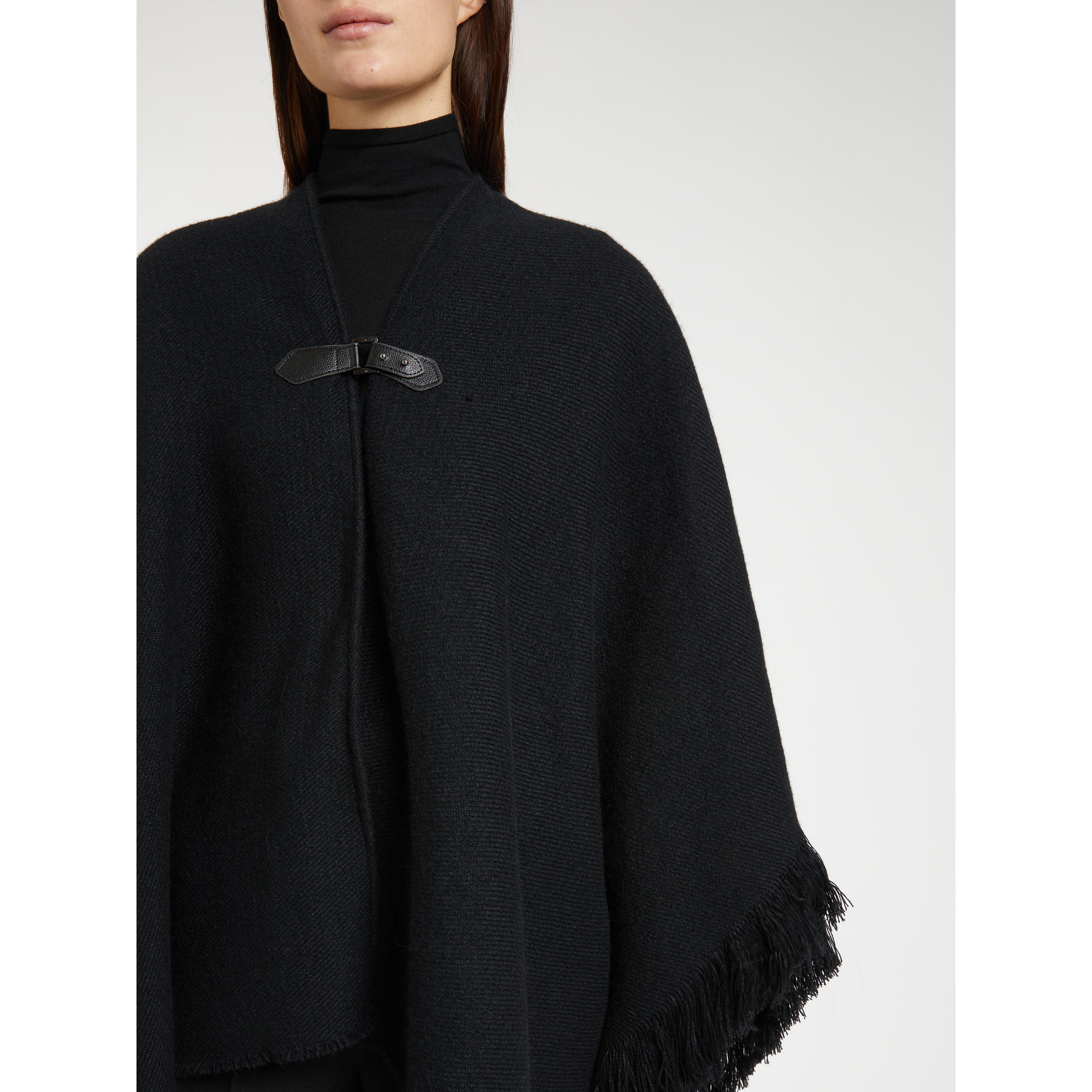 Poncho "Incasso" Nero con Fibbia in Pelle e Frange Decorative