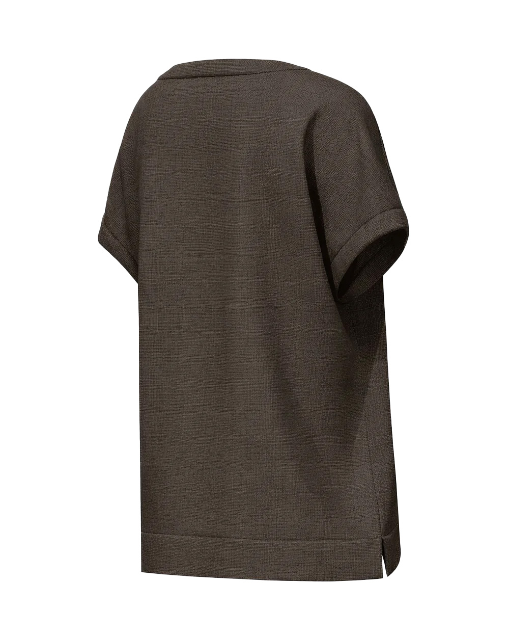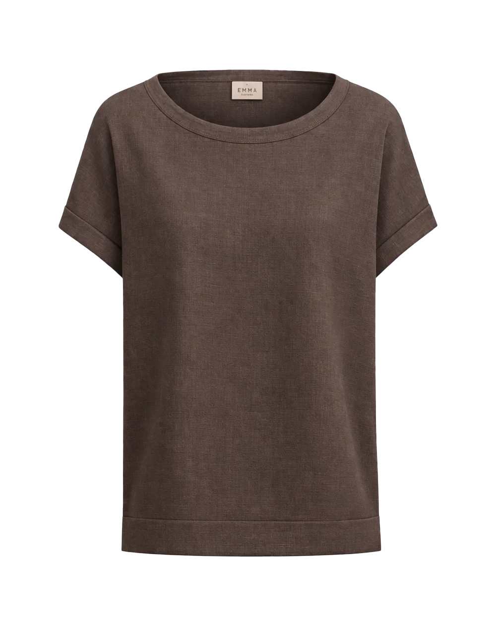 T-shirt in tela di puro lino lavato, fit regolare, scollo a barchetta, maniche corte con linea a kimono.