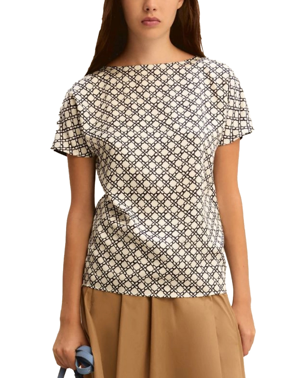 Blusa in twill stampato sul davanti e jersey di cotone stretch sul retro.