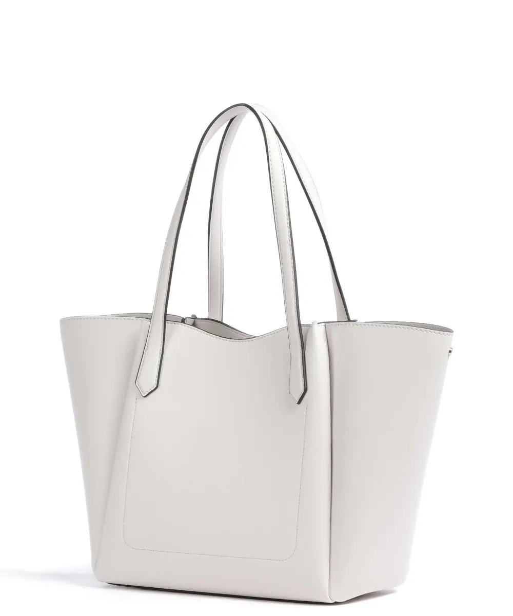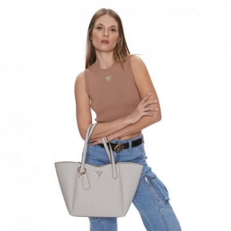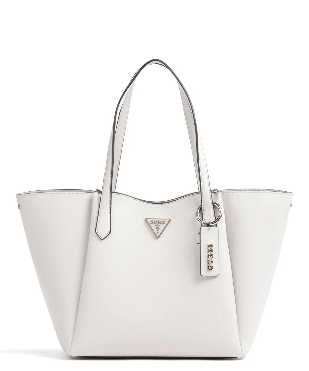 Elegante e funzionale, la borsa shopper "Iwona" di Guess è realizzata in pelle sintetica bianca con finiture in metallo oro lucido. Dotata di doppia chiusura con zip e calamita, piedini protettivi in metallo e ciondolo logato removibile. Interno spazioso con due ampi scomparti adatti al formato A4, tasca centrale con zip e tasca interna aggiuntiva. I manici comodi permettono di indossarla anche a spalla, per accompagnarti con stile durante tutta la giornata.