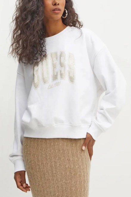 Felpa donna Guess girocollo oversize con logo Guess sul petto e polsini e fondo elasticizzato.