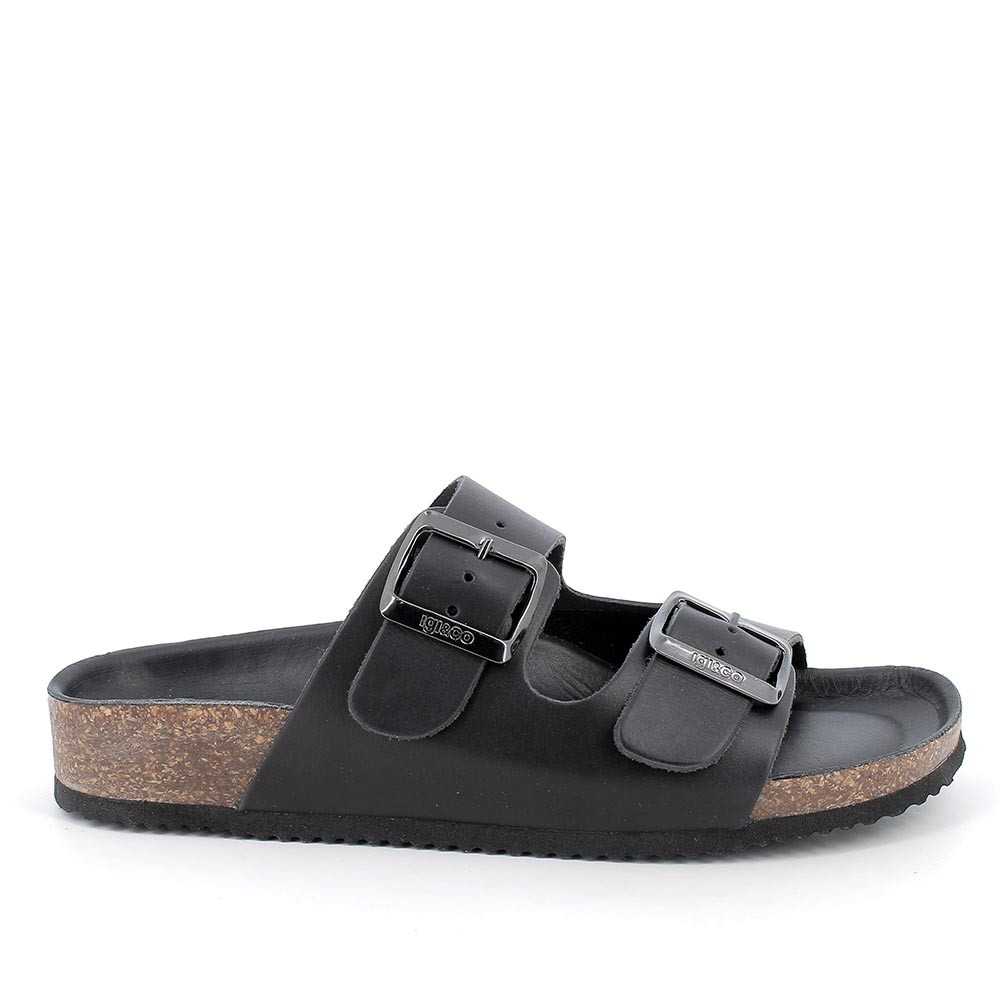Sandali Neri con Fibbia e Plantare Memory in Pelle Scamosciata