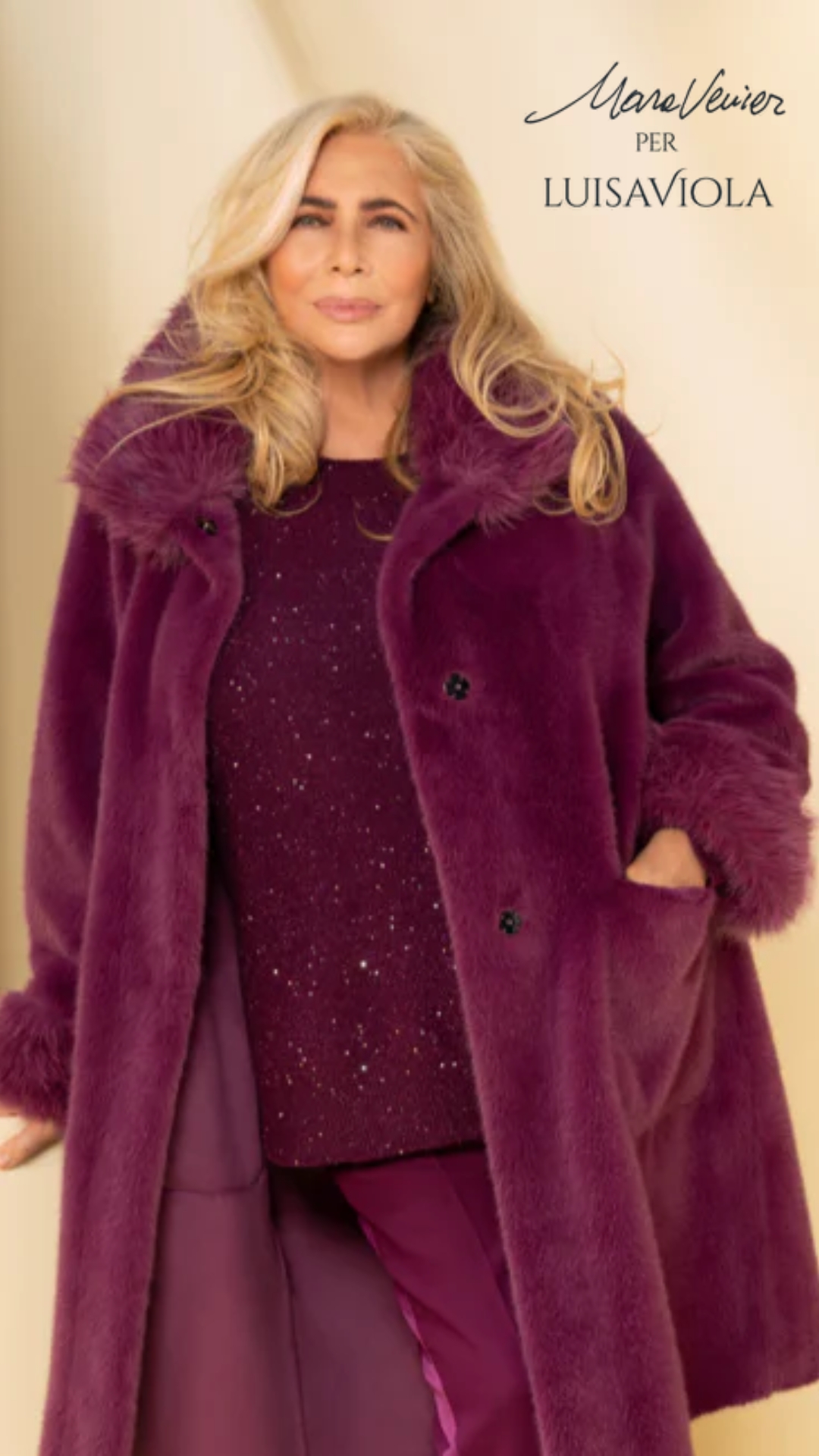 Cappotto Pelliccia Porpora con Collo Alto Morbido "Mara Venier per Luisa Viola"