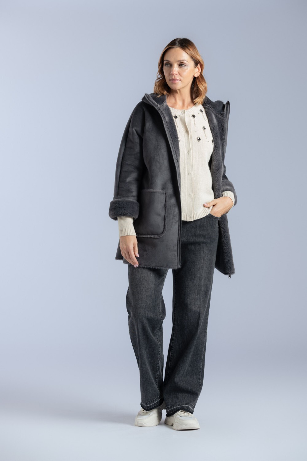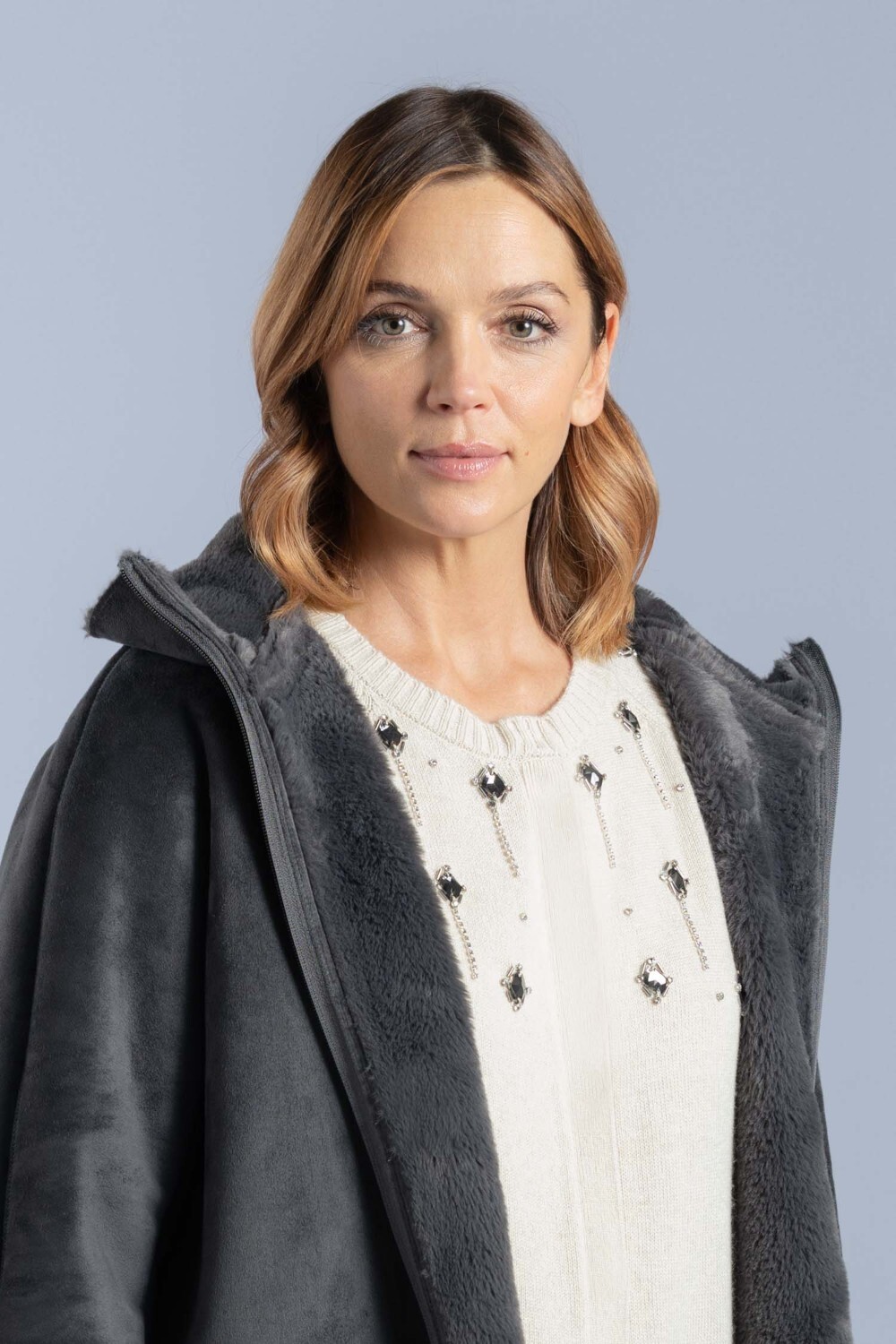Cardigan Mandorla con Ricami Gioiello e Lavorazione Misto Cashmere