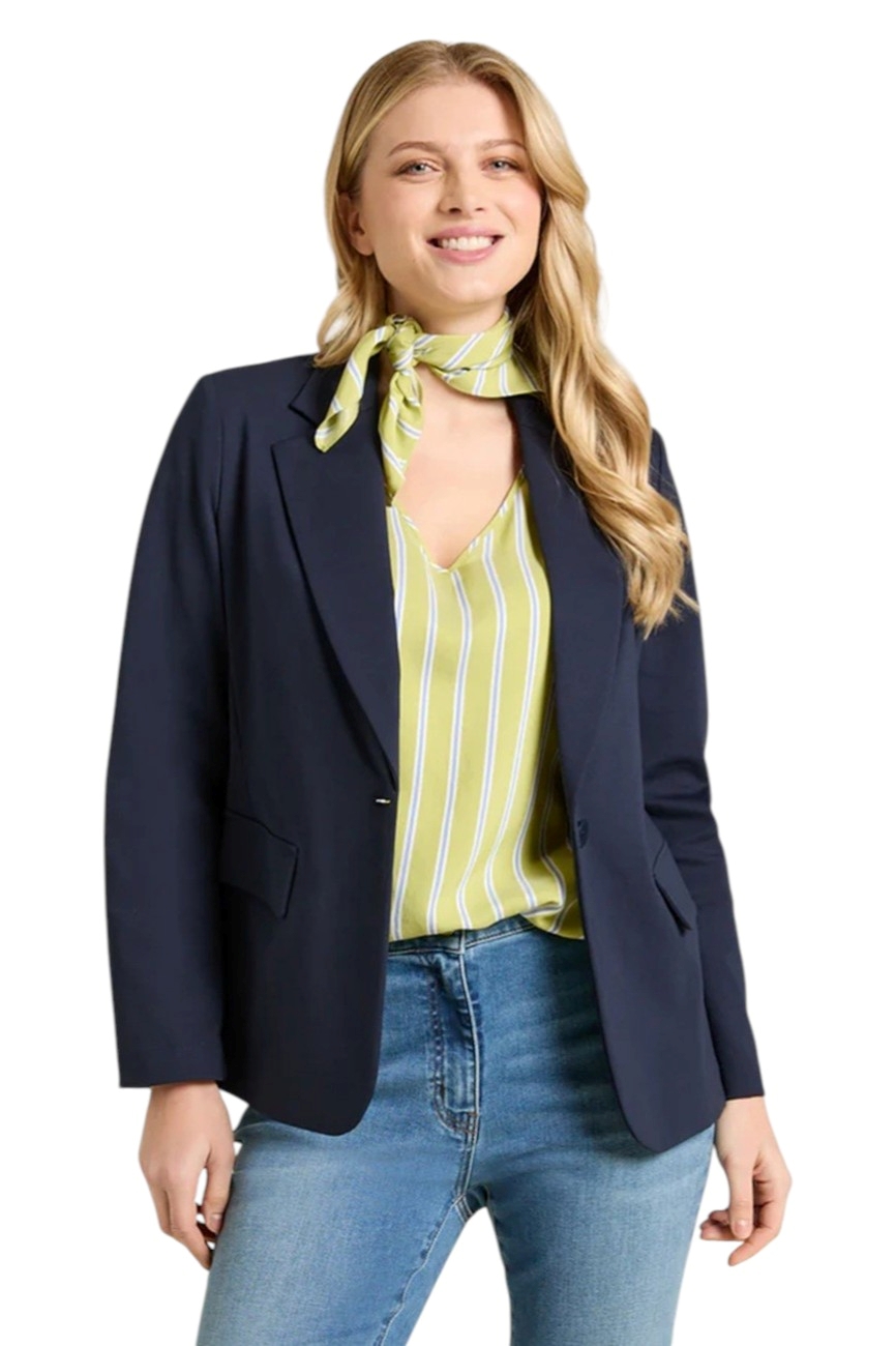 Giacca in Punto Milano dalla linea leggermente sciancrata. Tessuto stretch, collo e rever, chiusura con asola e bottone, pattine, sfoderato.La modella indossa la taglia 37 (46 IT) ed è alta 179 cm.