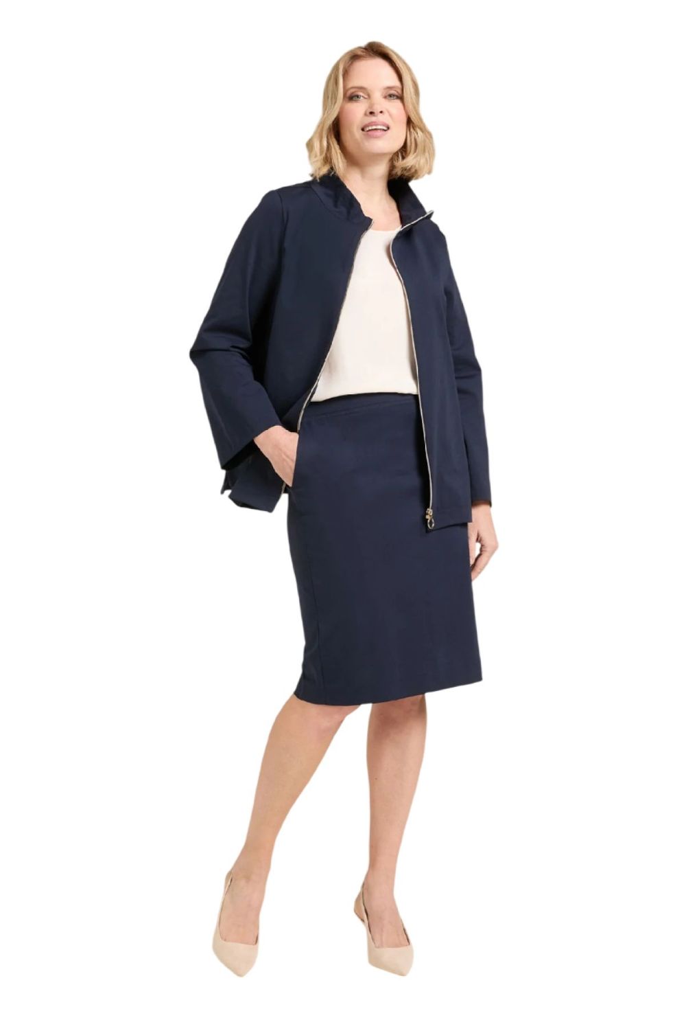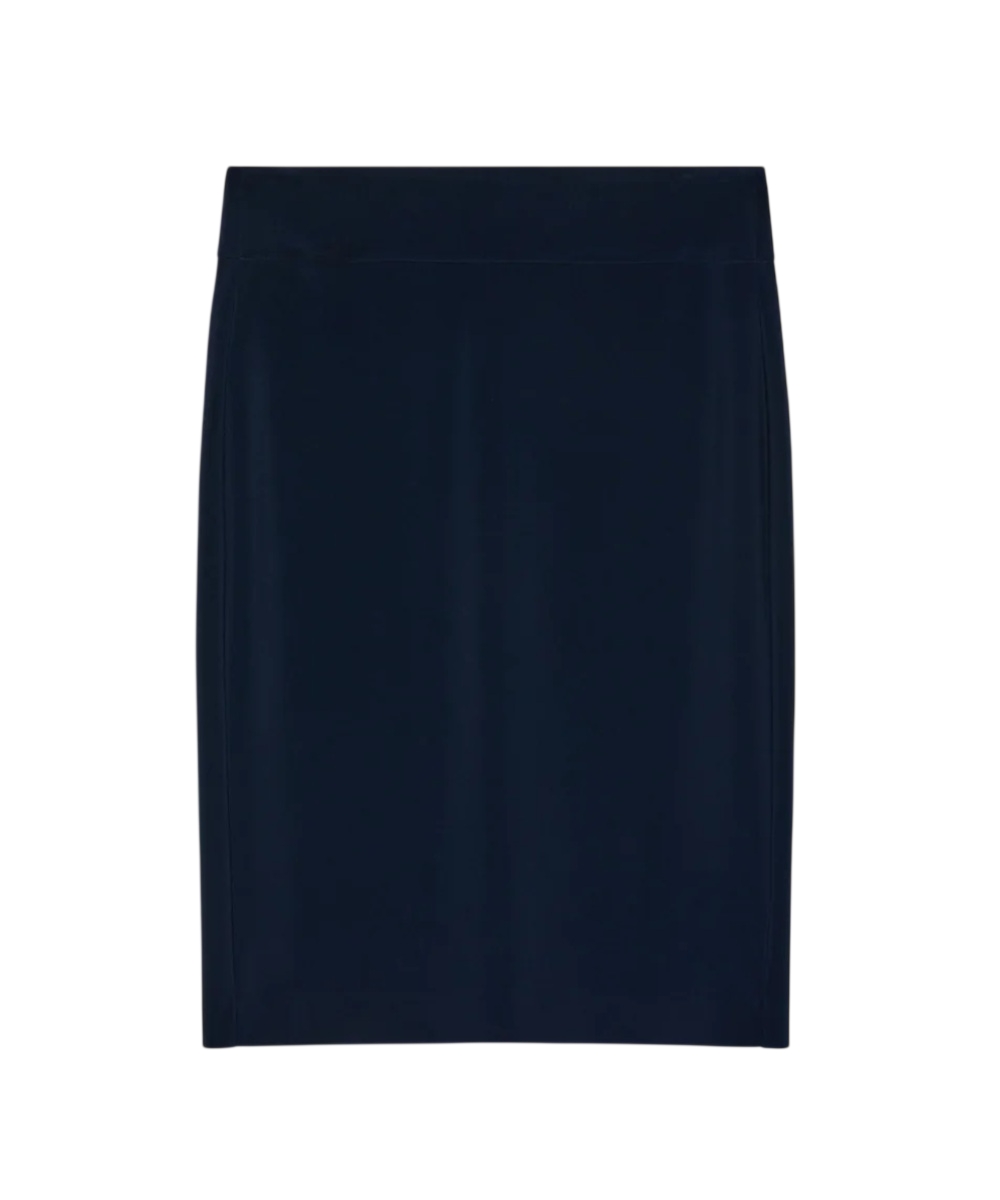 Gonna tubino passepartout in Compact stretch dalla linea fitted. Tessuto elasticizzato, cintura in forma con baschina estensibile. Spacco su taglio centro dietro. Costruzione Pull-On senza zip. Sfoderata. Tessuto "enver satin" caratterizzato da una superficie interna scivolosa che migliora la caduta del capo e dona una piacevole sensazione sulla pelle. Lavare a mano, non asciugare a tamburo.