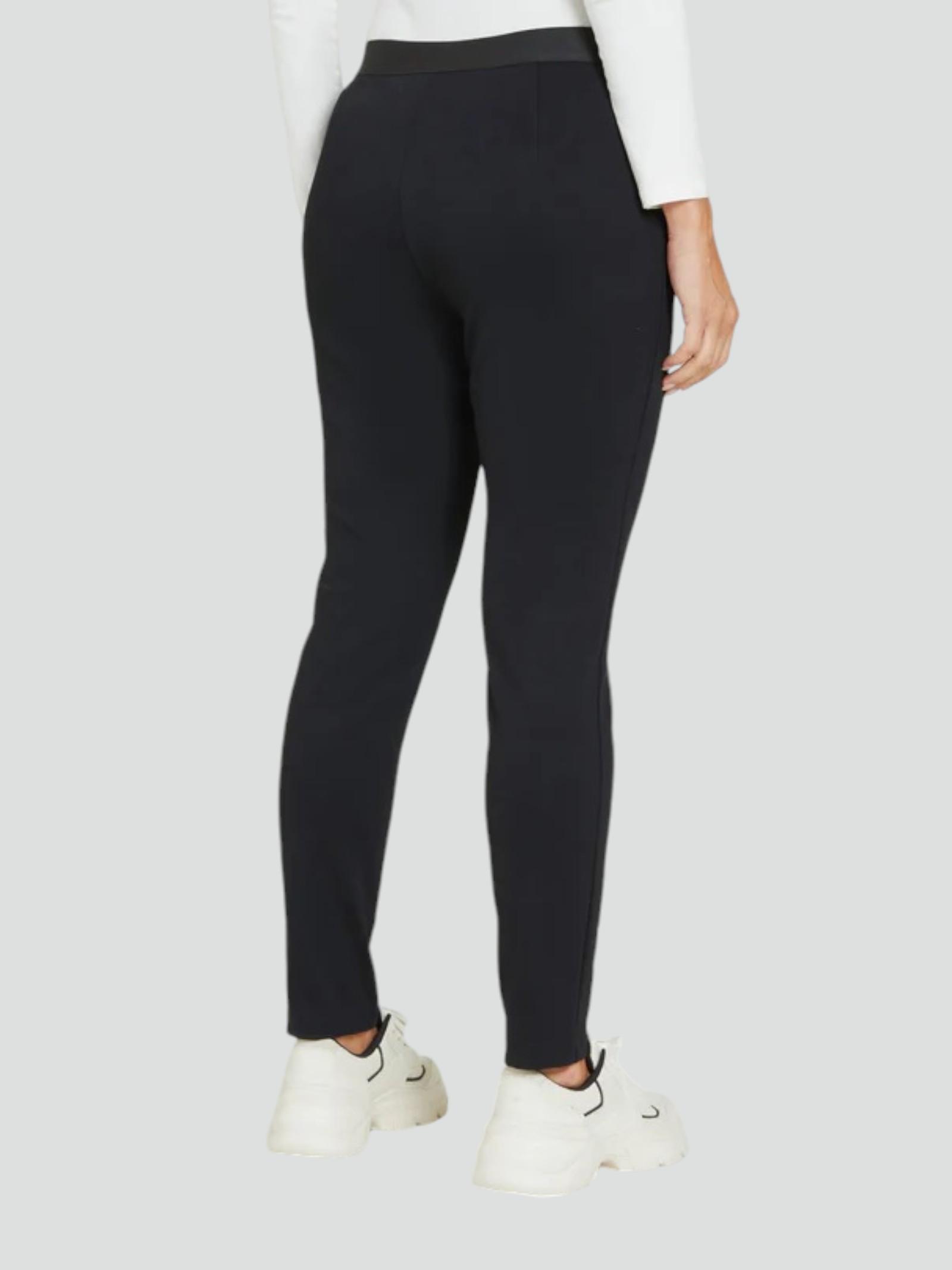 Pantaloni in punto stoffa stretch dalla linea skinny. Cinturino estensibile con gros grain elastico nel tratto dietro. Costruzione "Pull-On" senza zip.