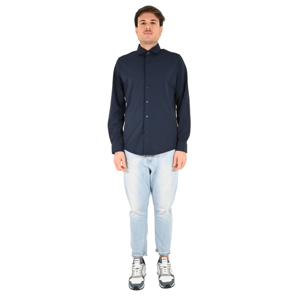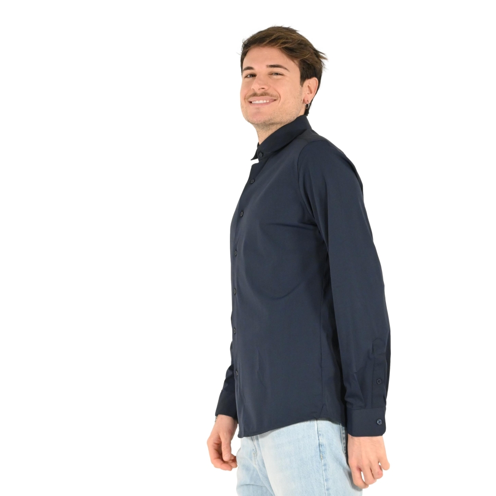 Camicia blu in Nylon a Maniche Lunghe con Collo Italiano MARK-UP | Camicia | MK893012BLU