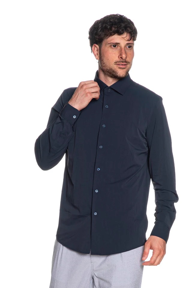 Camicia blu in Nylon a Maniche Lunghe con Collo Italiano