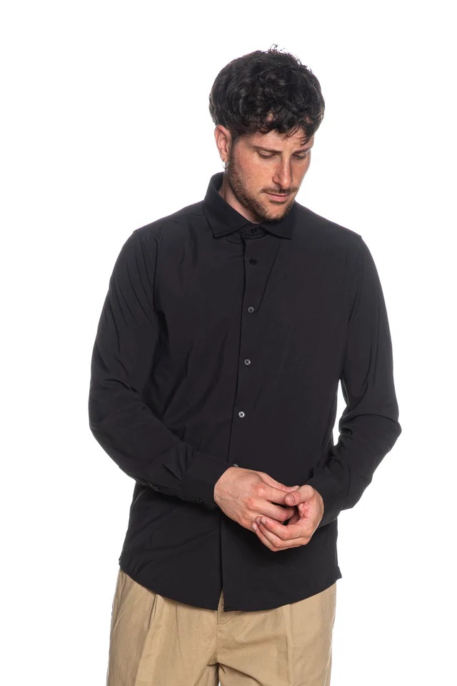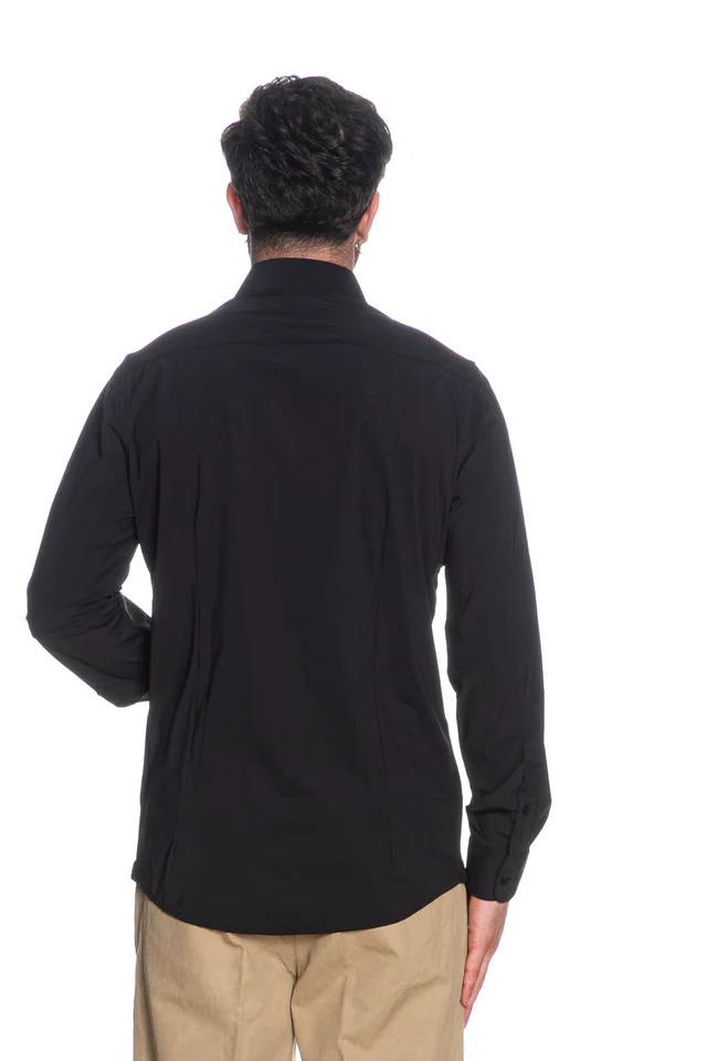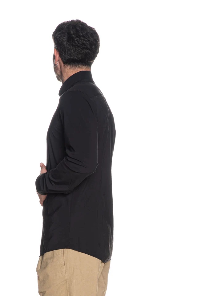Camicia nera in Nylon a Maniche Lunghe con Collo Italiano