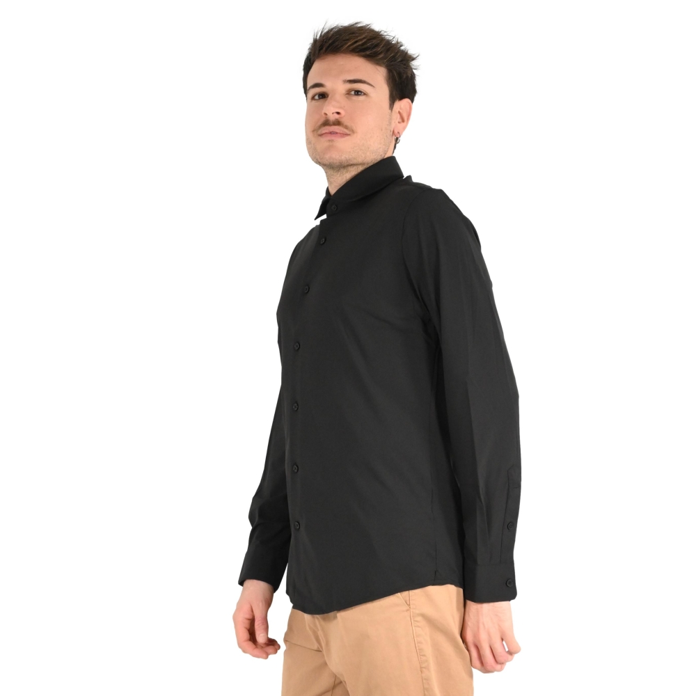 Camicia nera in Nylon a Maniche Lunghe con Collo Italiano MARK-UP | Camicia | MK893012NERO