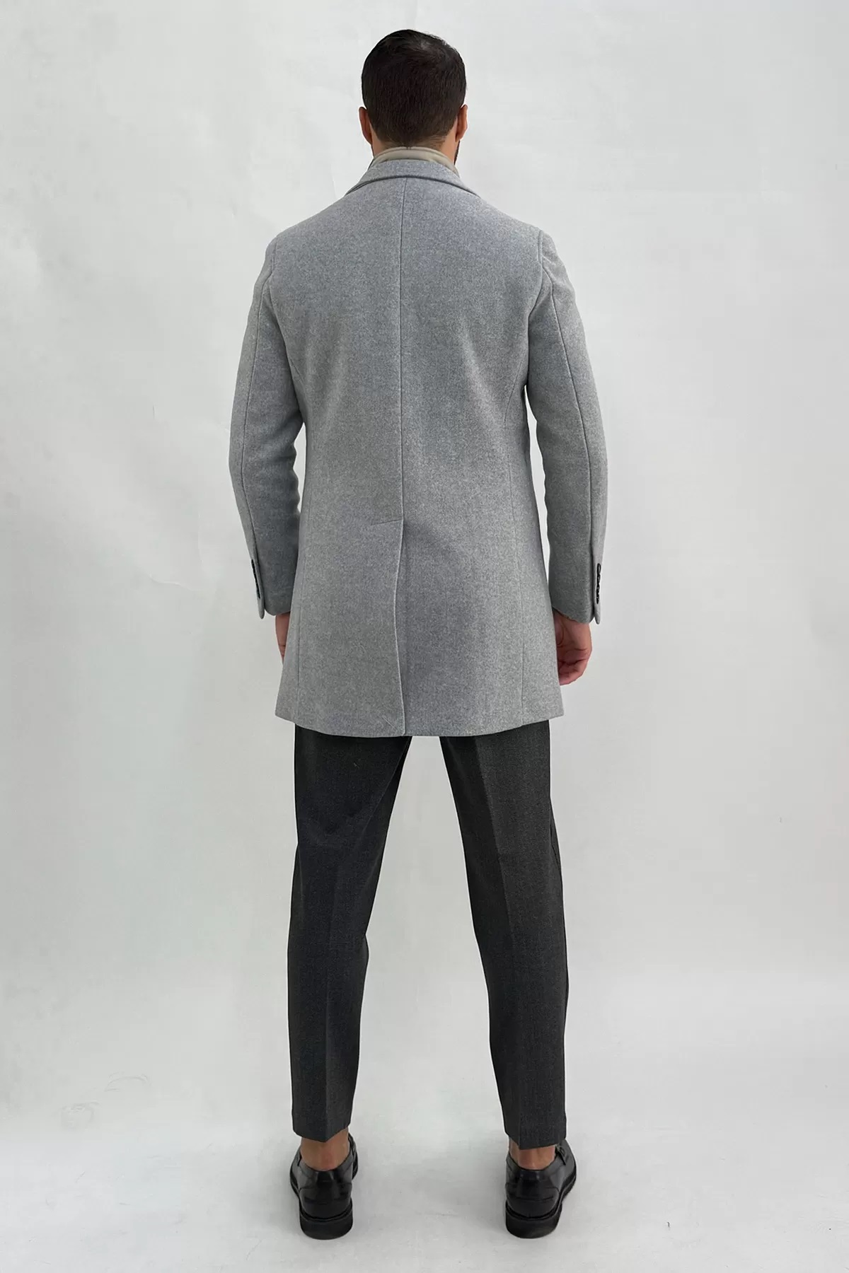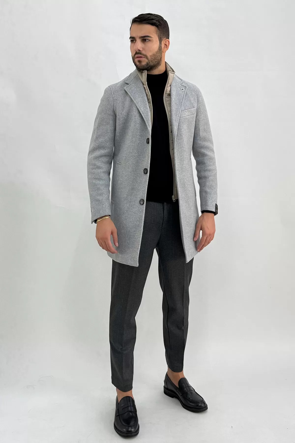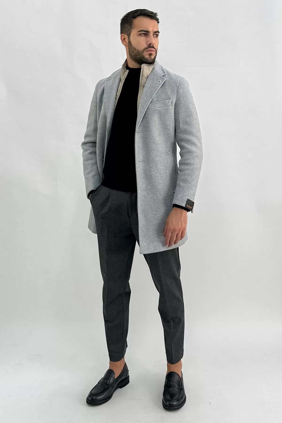 Cappotto Grigio Melange Monopetto con Pettorina Interna