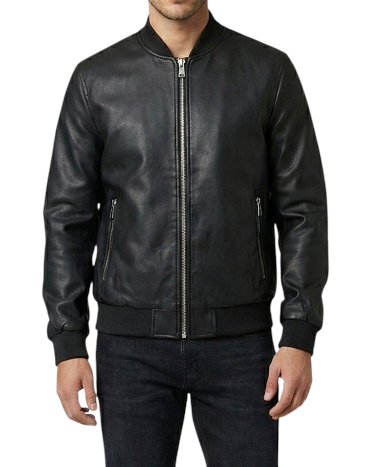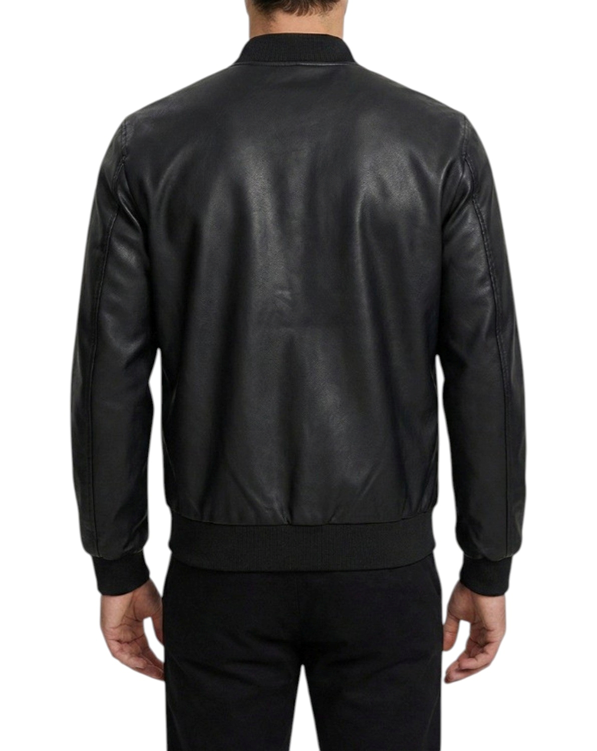 Giubbino modello bomber ecopelle effetto nappa. Colletto, polsini e fondo a costine Imbottitura leggera. Zip metallo finitura lucida. La cerniera non presenta doppio cursore. Tasche laterali anch'esse dotate di chiusura a zip.