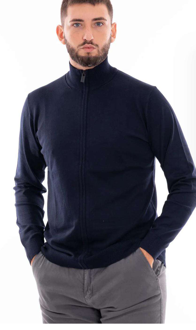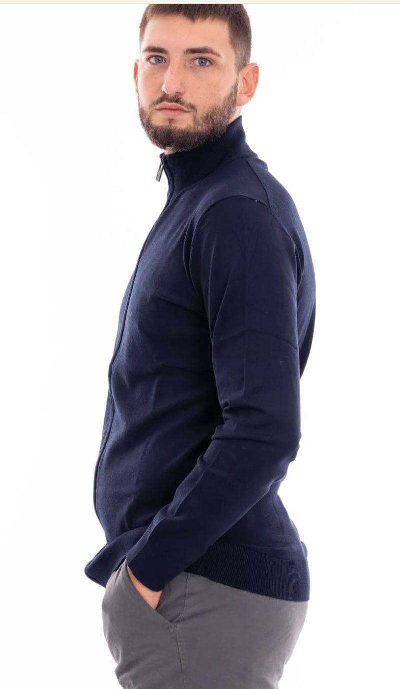La maglia con zip da uomo Markup in raffinato colore blu navy è un capo dal design pulito e versatile, perfetto per ogni occasione. Realizzata in filato finezza 12 con blend di viscosa, offre una mano morbida e leggera, garantendo comfort e traspirabilità durante lintera giornata. Il modello presenta collo alto con chiusura a zip integrale, maniche lunghe e bordature a costine su polsini e fondo per una vestibilità impeccabile. Ideale da indossare con jeans o pantaloni eleganti, rappresenta lequilibrio perfetto tra stile casual e sofisticato.