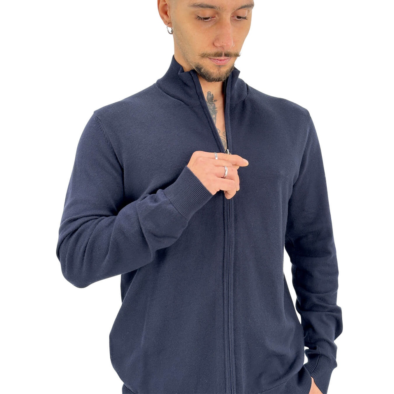 uomo 〉 Abbigliamento 〉 Maglia 〉 Maglia con zip da uomo blu in filato finezza 12 Viscose Blend