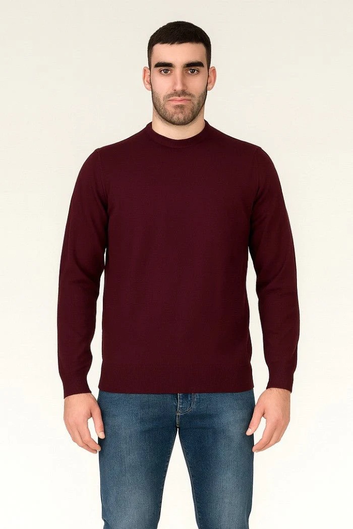 Maglia girocollo da uomo bordeaux in viscosa punto riso