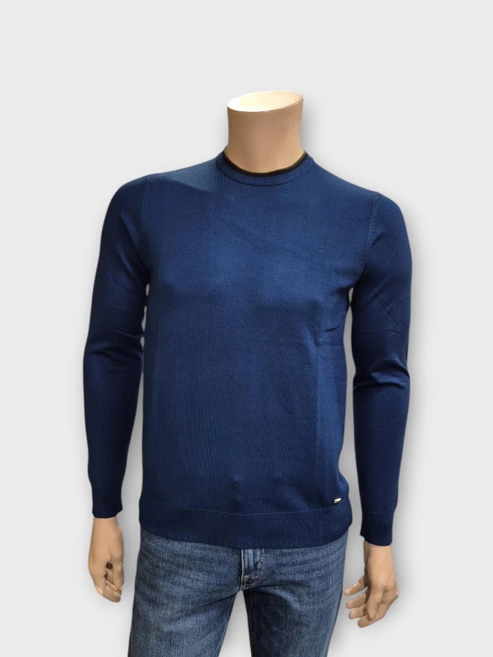 Il maglioncino girocollo da uomo Markup in tonalità denim è un capo dal fascino classico e curato nei dettagli. Realizzato in morbido filato Viscose Blend (80% viscosa, 20% nylon), offre comfort, leggerezza e uneccellente vestibilità. Il design presenta doppio collo a contrasto, polsini e fondo elasticizzati per una linea pulita e aderente, e toppe sui gomiti a contrasto che aggiungono un tocco di stile e personalità. Perfetto da indossare con camicia o t-shirt per un look casual raffinato, ideale sia per il tempo libero che per lufficio.