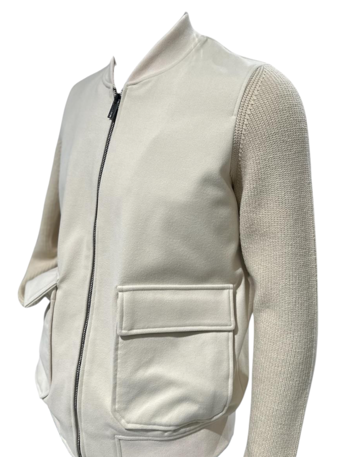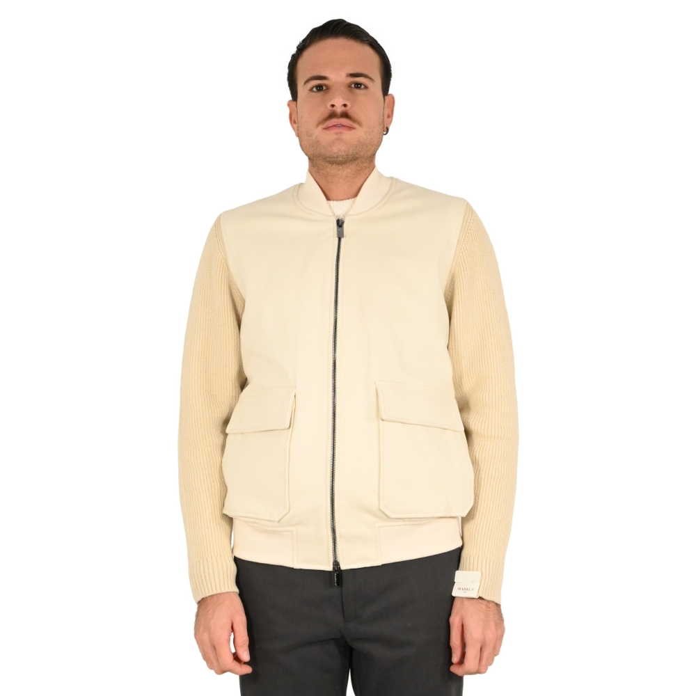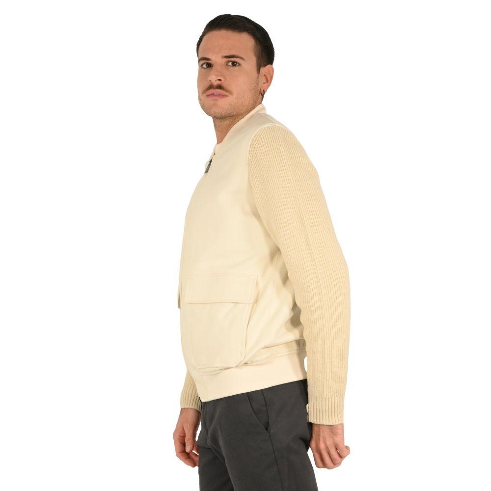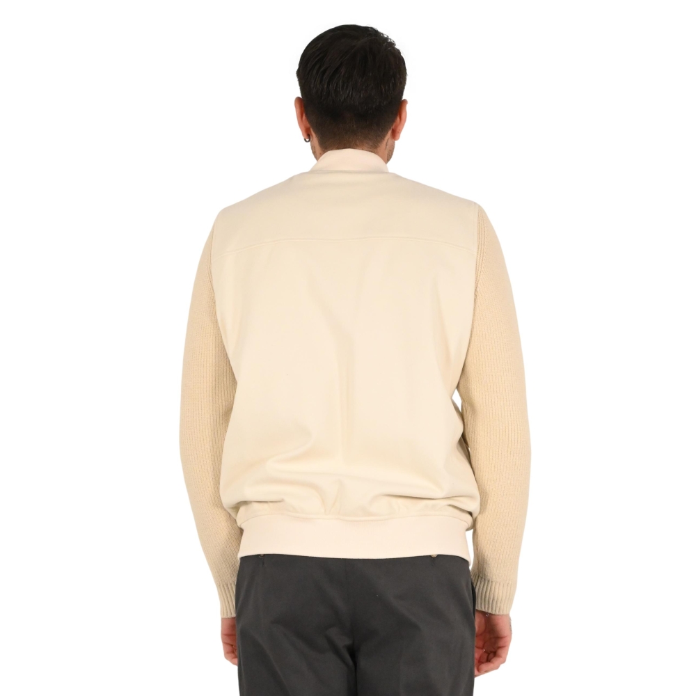uomo 〉 Abbigliamento 〉 Giubbino 〉 Overshirt uomo color latte in tessuto diagonale con maniche in maglia