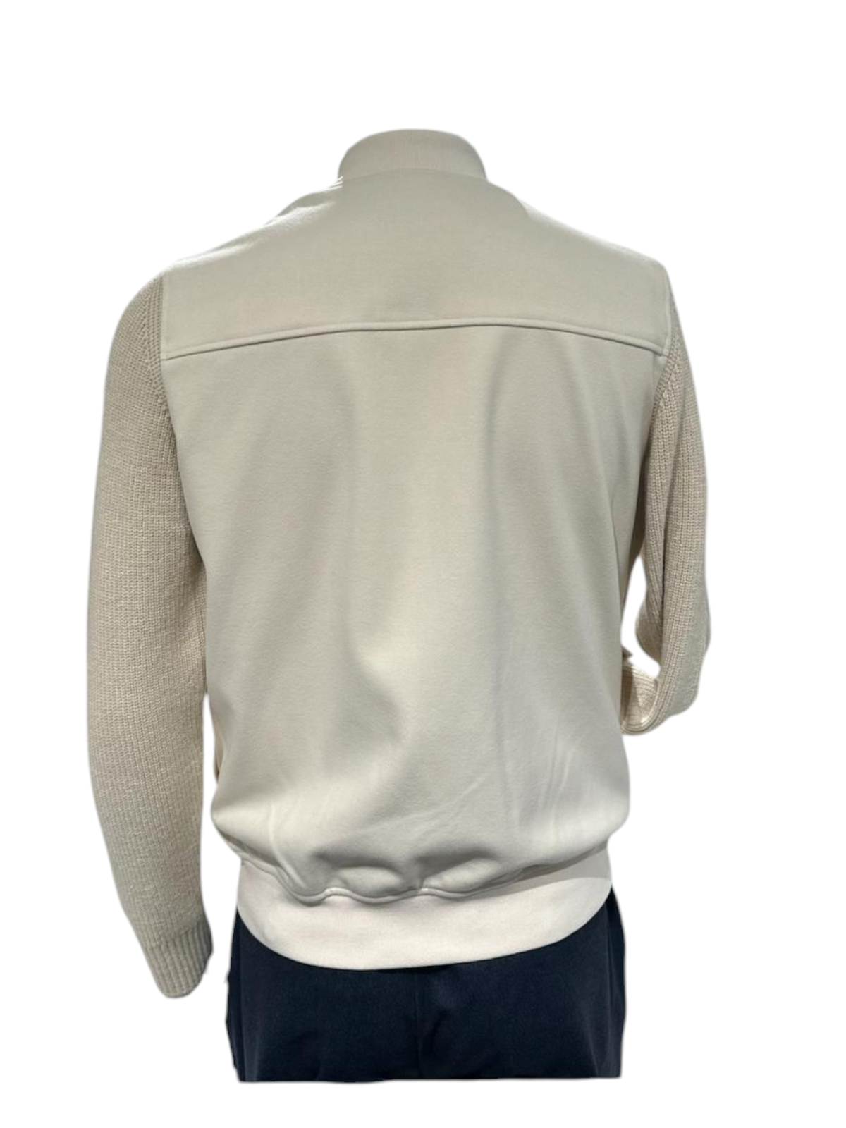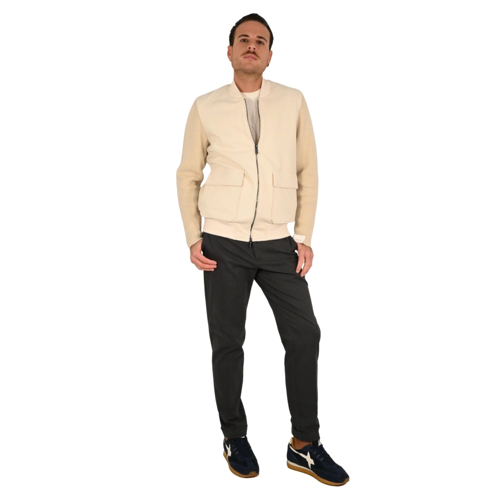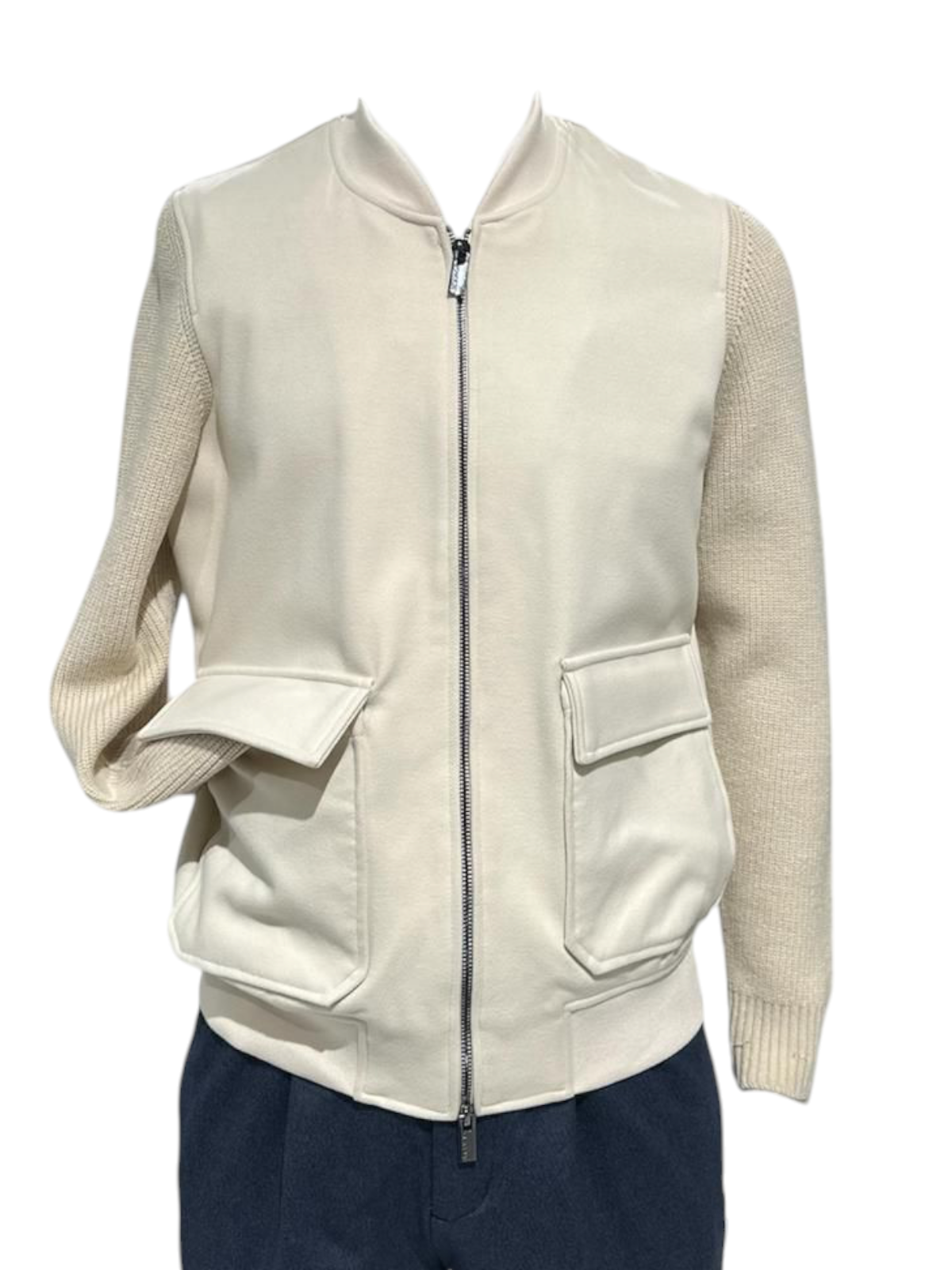 uomo 〉 Abbigliamento 〉 Giubbino 〉 Overshirt uomo color latte in tessuto diagonale con maniche in maglia