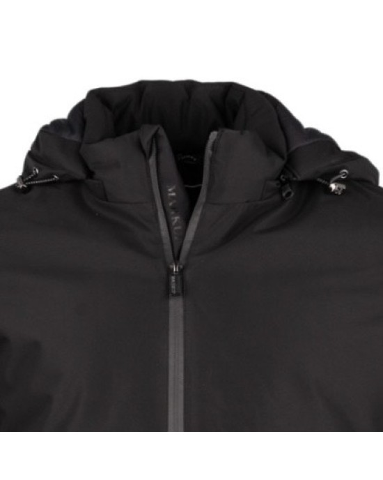 Parka Uomo Nero Impermeabile con Cappuccio e Zip a Contrasto
