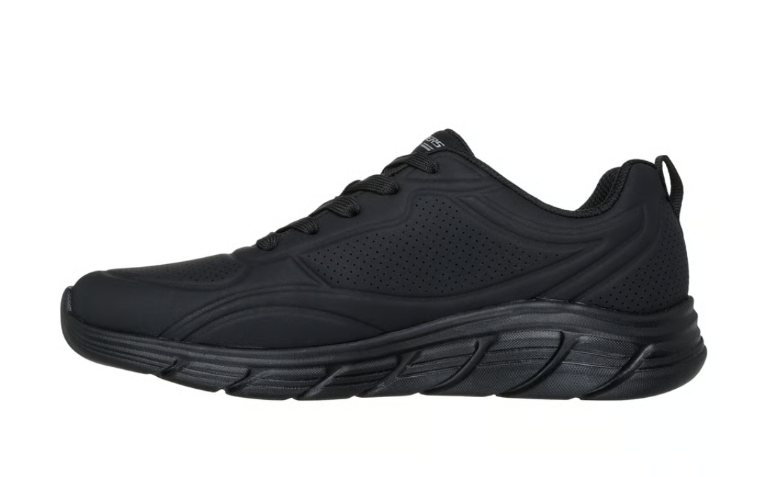 presenta una tomaia in materiale tecnico con dettagli impressi, allacciatura frontale e una soletta ammortizzata Skechers Memory Foam™.